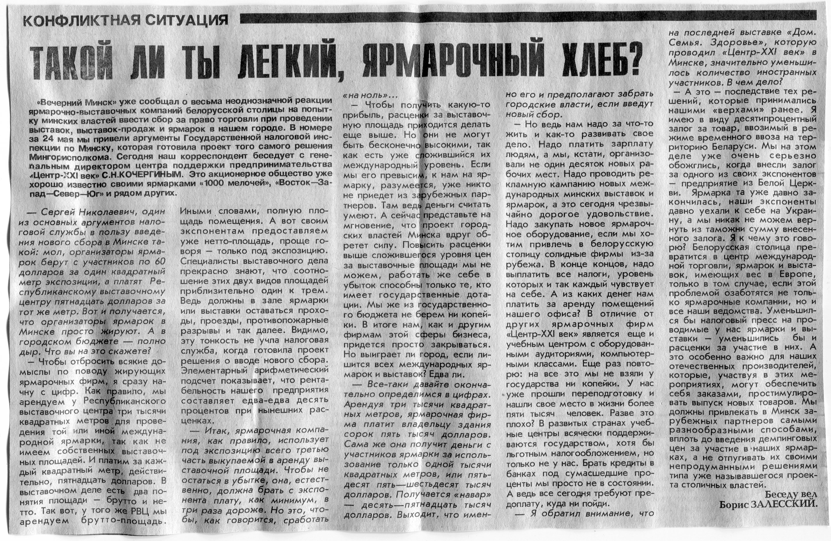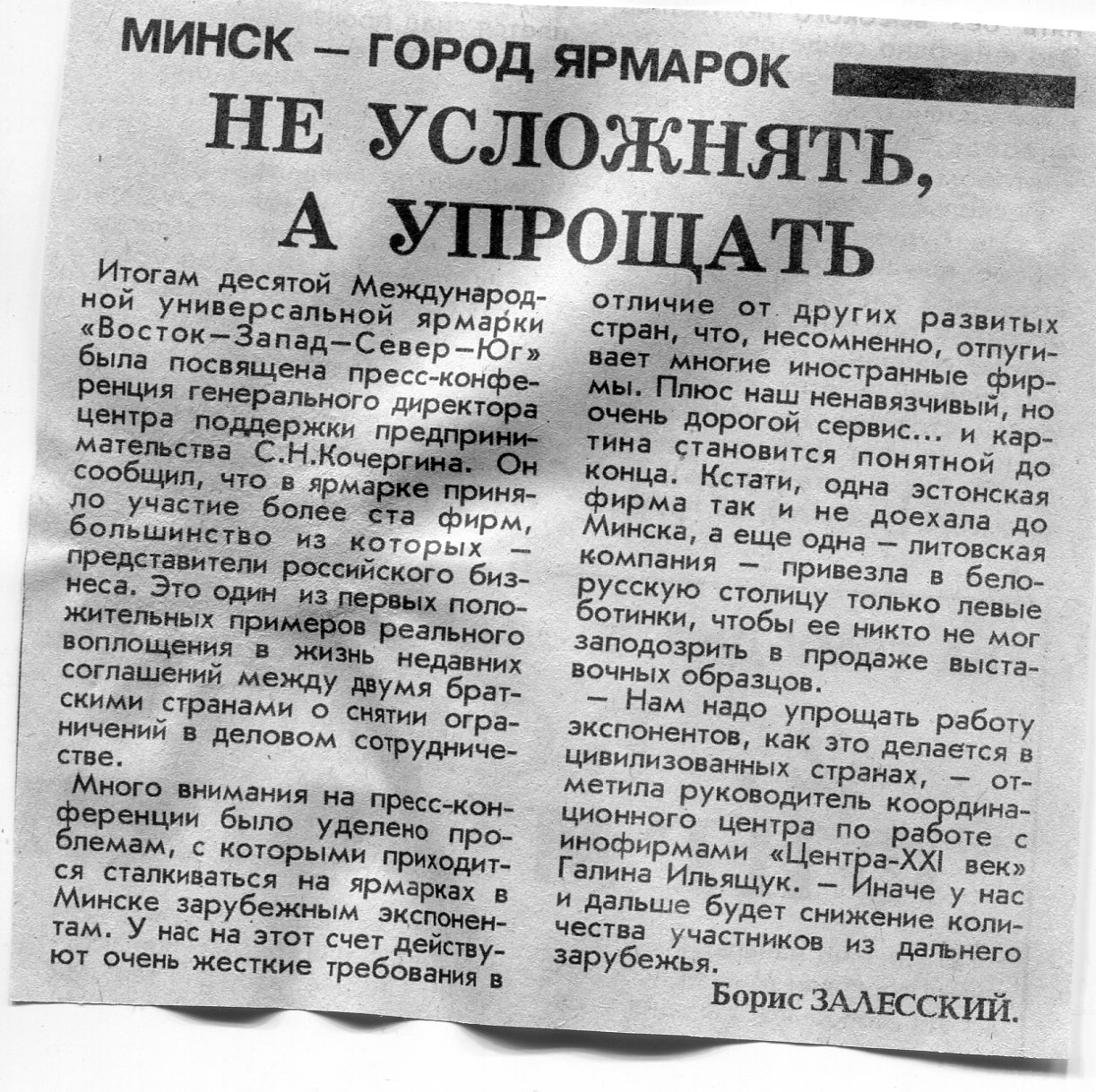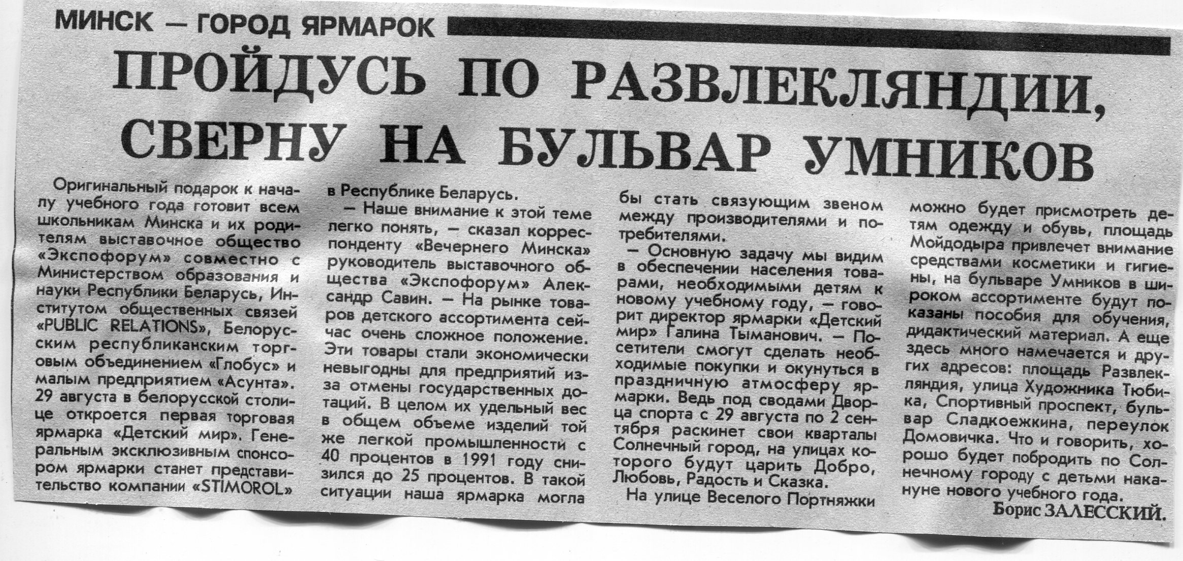 Залесский, Б. Ярмарки расширяют кругозор / Б. Залесский // Вечерний Минск. – 1995. – 3 июл.