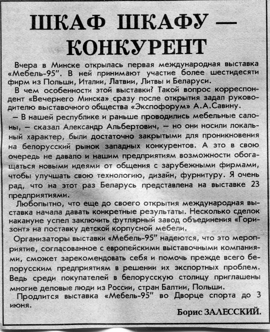 Залесский, Б. Шкаф шкафу - конкурент / Б. Залесский // Вечерний Минск. – 1995. – 31 мая.