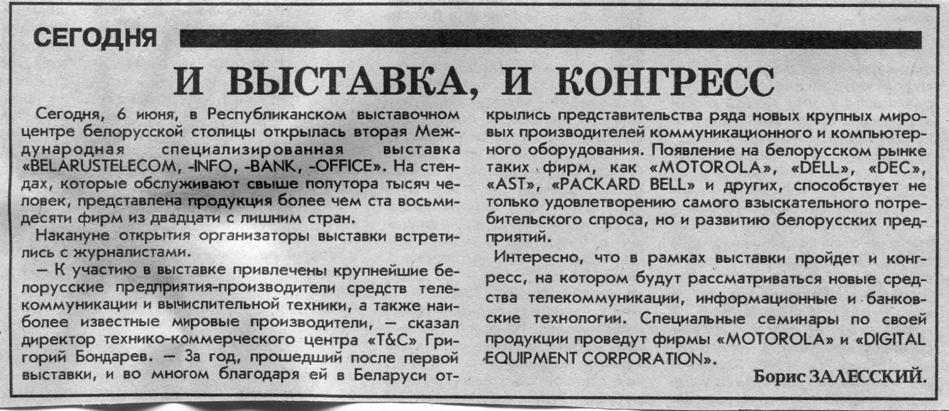 Залесский, Б. И выставка, и конгресс / Б. Залесский // Вечерний Минск. – 1995. – 6 июн.