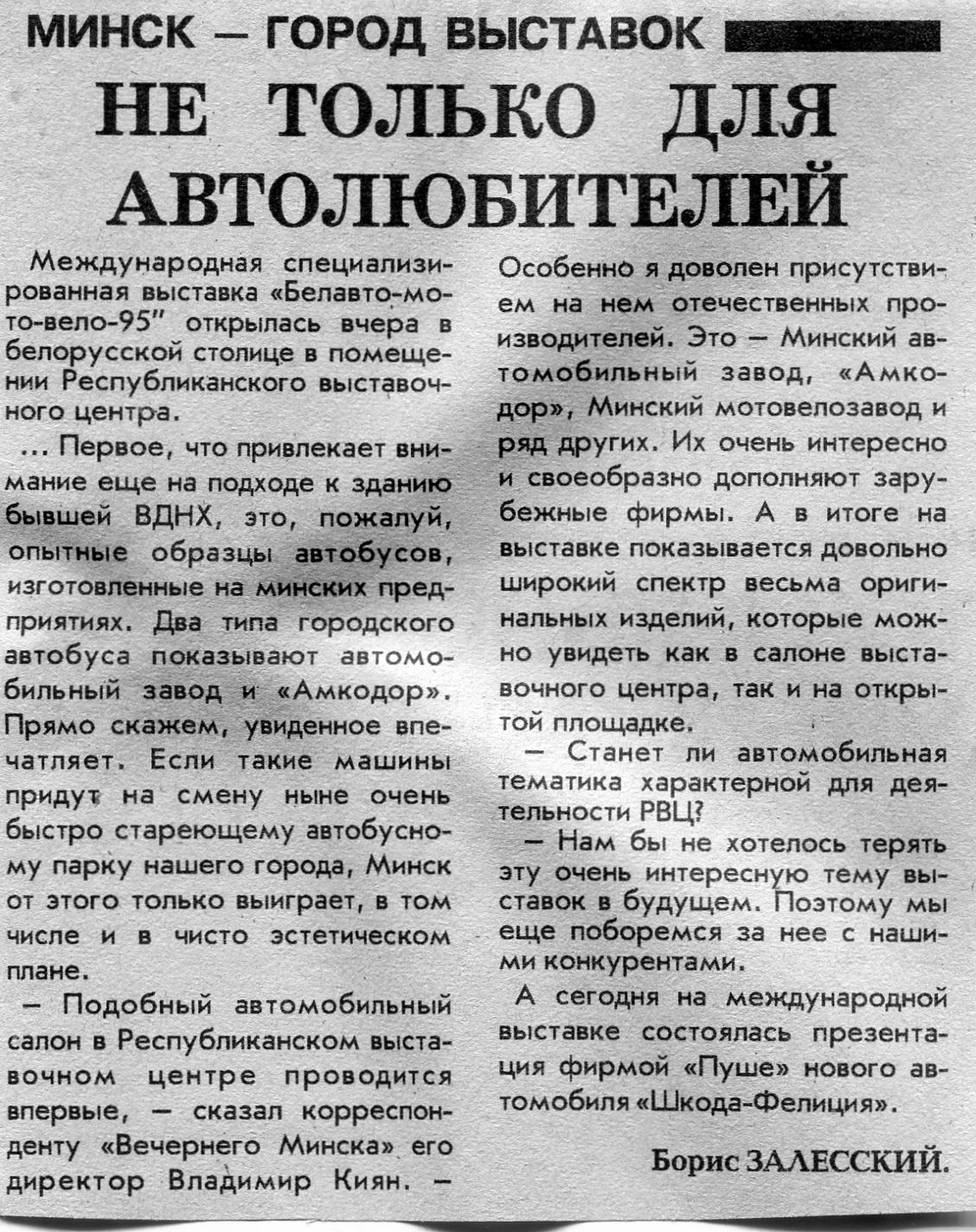 Залесский, Б. Не только для автолюбителей / Б. Залесский // Вечерний Минск. – 1995. – 24 мая.