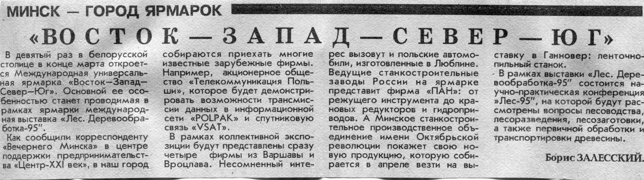 Залесский, Б. "Восток - Запад - Север - Юг" / Б. Залесский // Вечерний Минск. – 1995. – 10 мар.