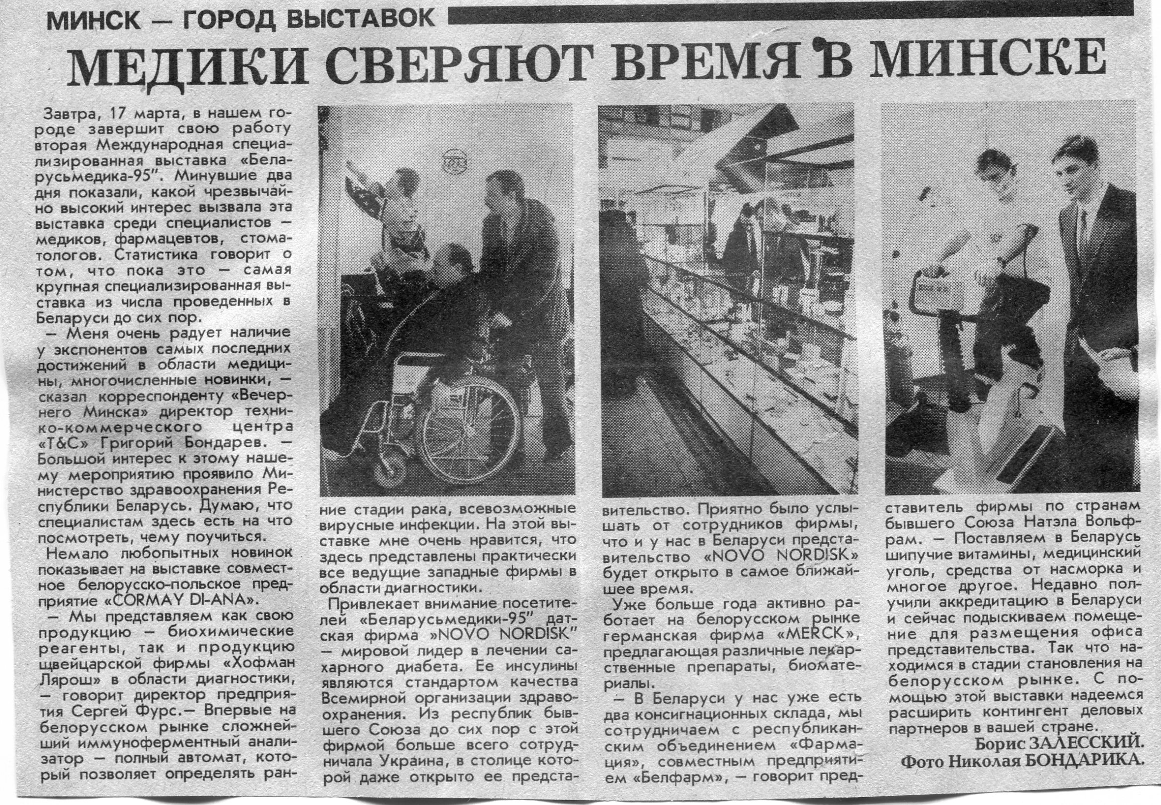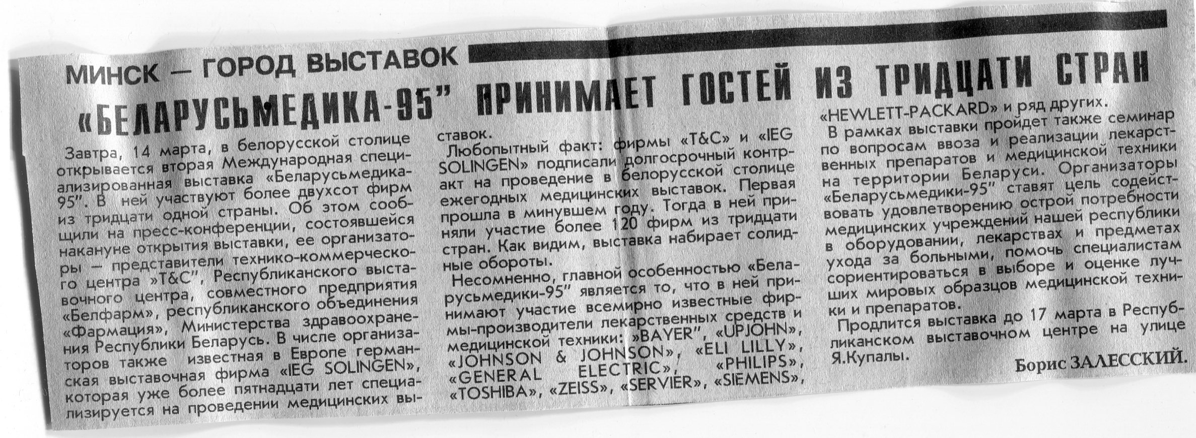 Залесский, Б. "Беларусьмедика-95" принимает гостей из тридцати стран / Б. Залесский // Вечерний Минск. – 1995. – 13 мар.