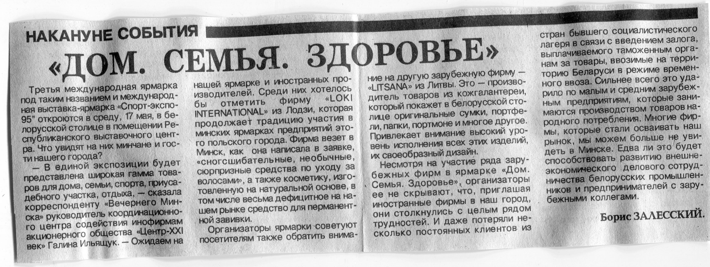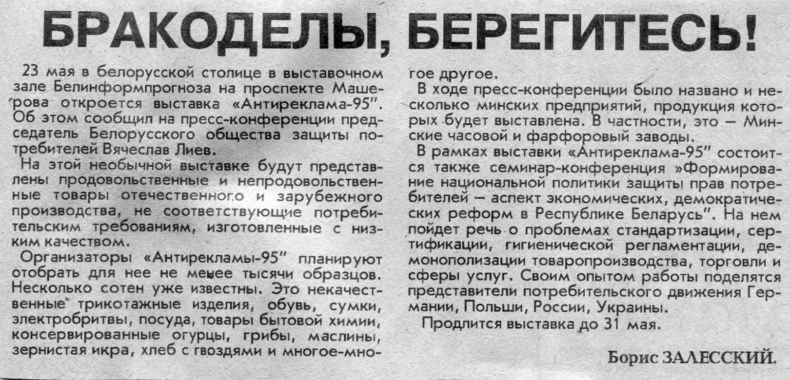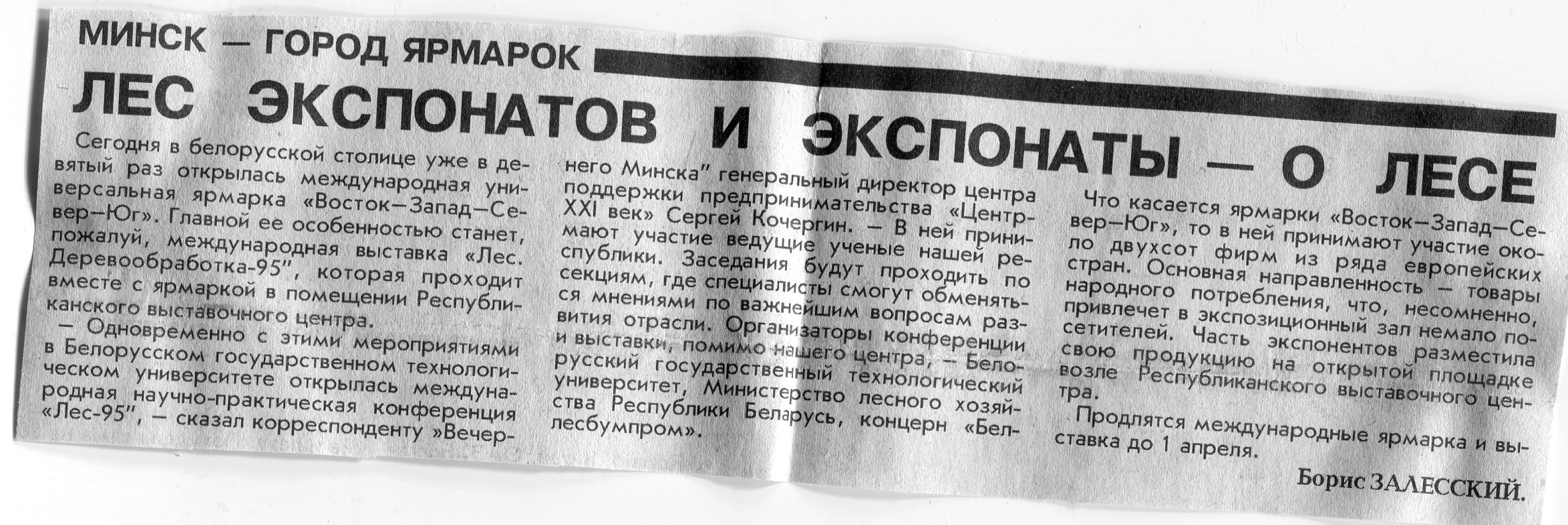 Залесский, Б. "Мебель-95" / Б. Залесский // Вечерний Минск. – 1995. – 16 мая.