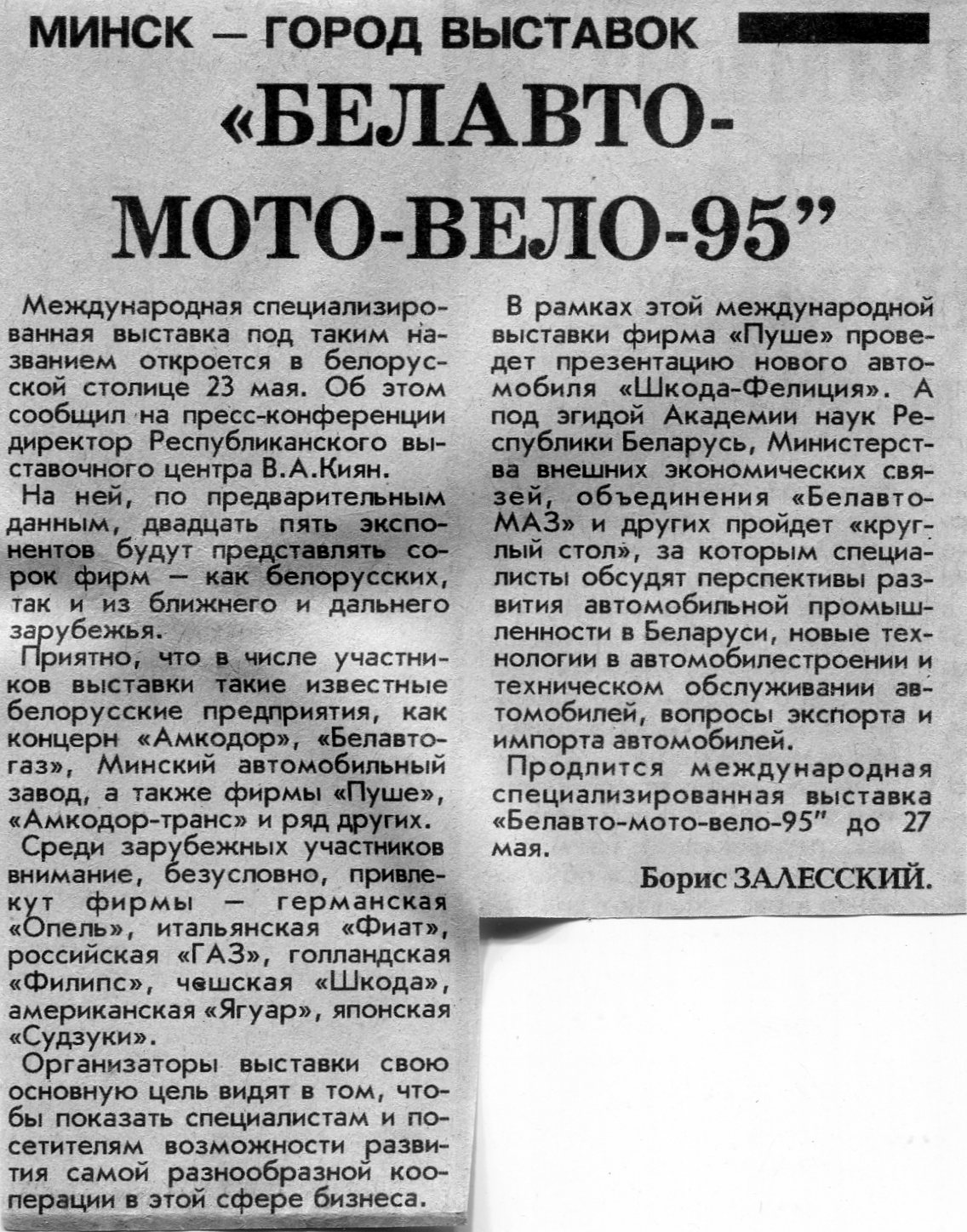 Залесский, Б. "Белавто-мото-вело-95" / Б. Залесский // Вечерний Минск. – 1995. – 19 мая.