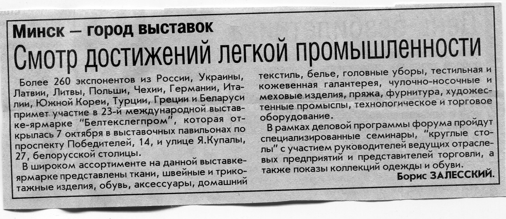 Залесский, Б. Смотр достижений легкой промышленности / Б. Залесский // Вечерний Минск. – 2008. – 8 окт.