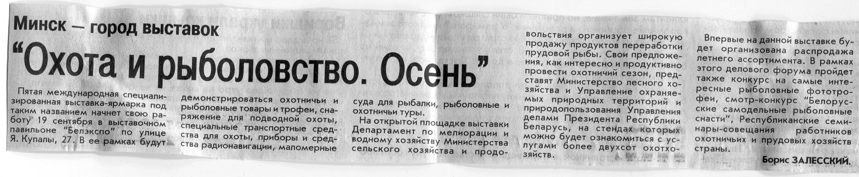 Залесский, Б. "Охота и рыболовство. Осень" / Б. Залесский // Вечерний Минск. – 2007. – 18 сент.