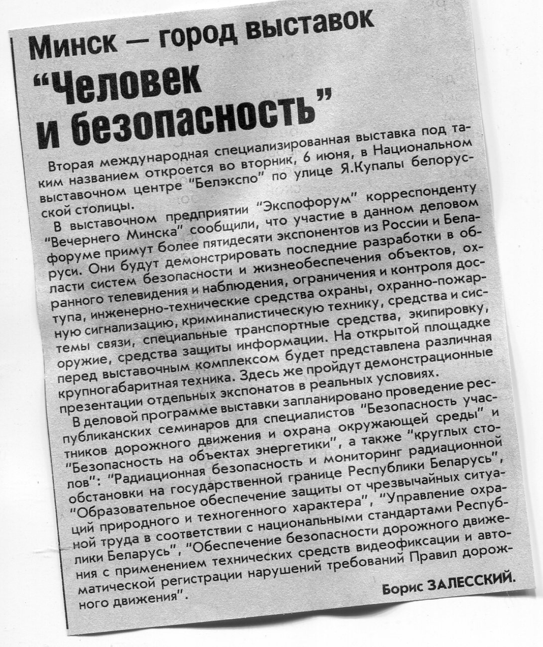 Залесский, Б. "Человек и безопасность" / Б. Залесский // Вечерний Минск. – 2006. – 2 июн.