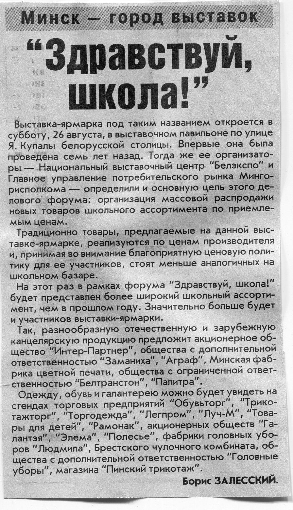 Залесский, Б. "Белтекслегпром-2006" / Б. Залесский // Вечерний Минск. – 2006. – 9 окт.