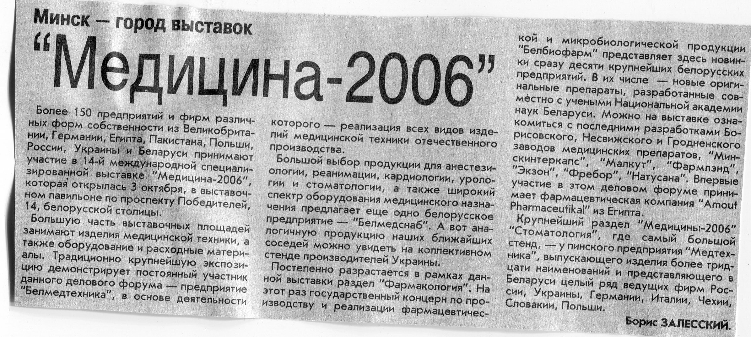 Залесский, Б. "Медицина-2006" / Б. Залесский // Вечерний Минск. – 2006. – 4 окт.
