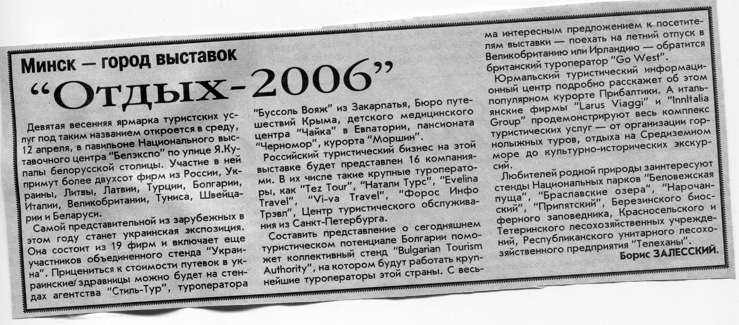 Залесский, Б. "Отдых-2006" / Б. Залесский // Вечерний Минск. – 2006. – 11 апр.