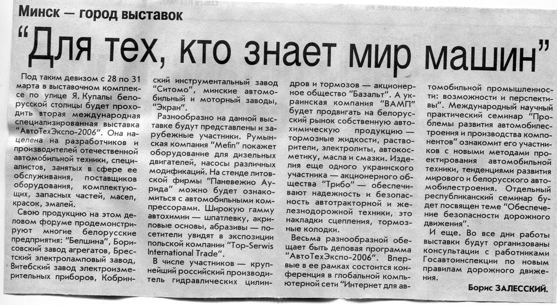 Залесский, Б. "Для тех, кто знает мир машин" / Б. Залесский // Вечерний Минск. – 2006. – 22 мар.