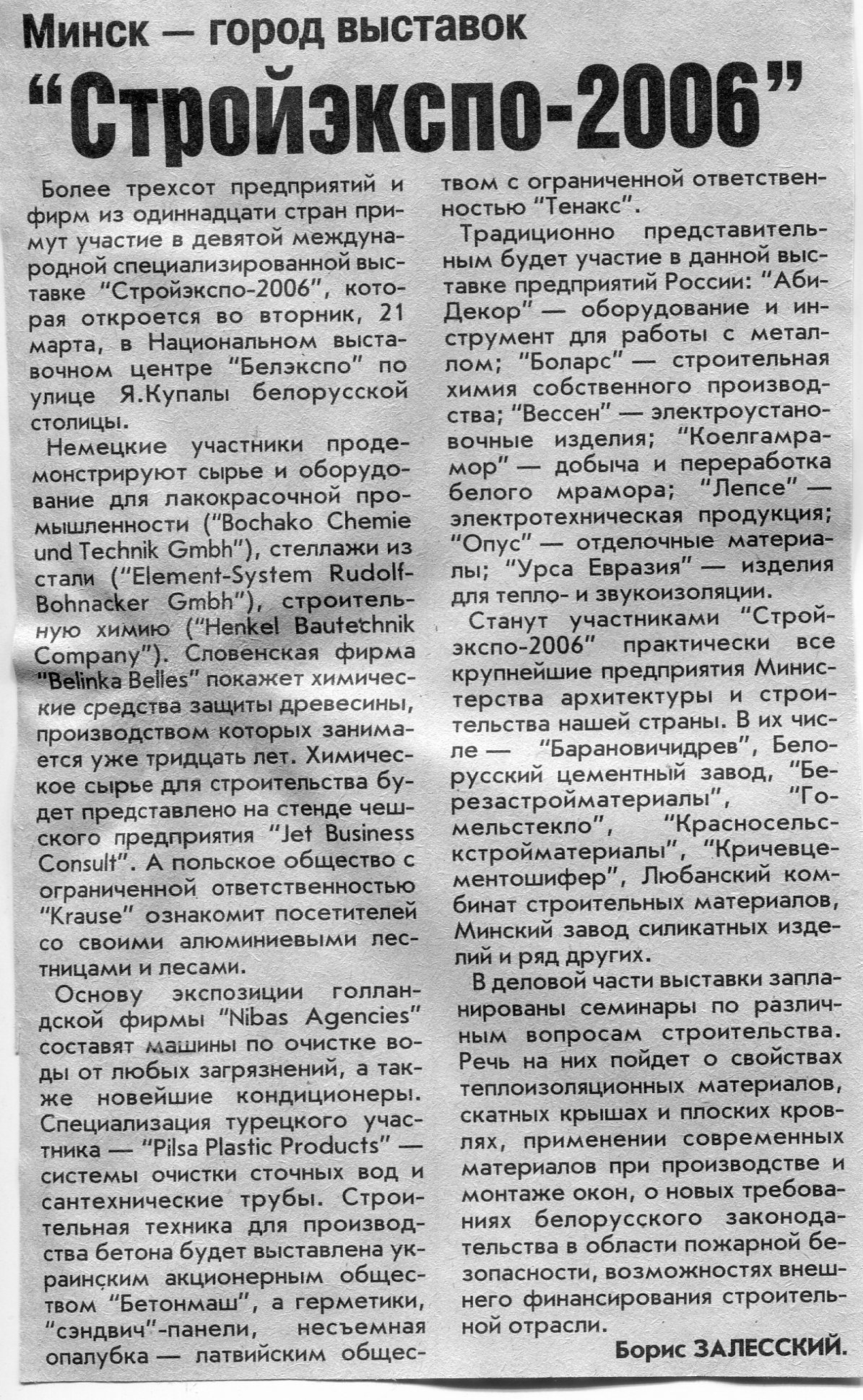 Залесский, Б. "Стройэкспо-2006" / Б. Залесский // Вечерний Минск. – 2006. – 16 мар.