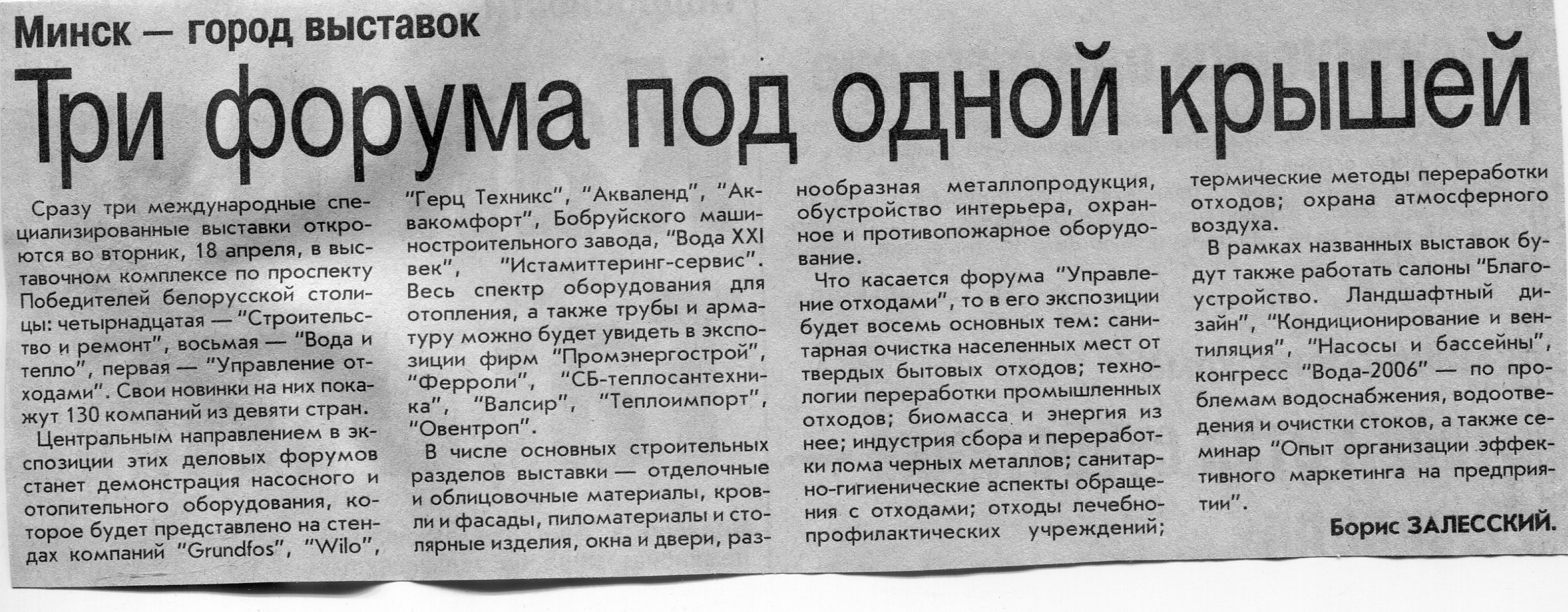 Залесский, Б. Три форума под одной крышей / Б. Залесский // Вечерний Минск. – 2006. – 18 апр.