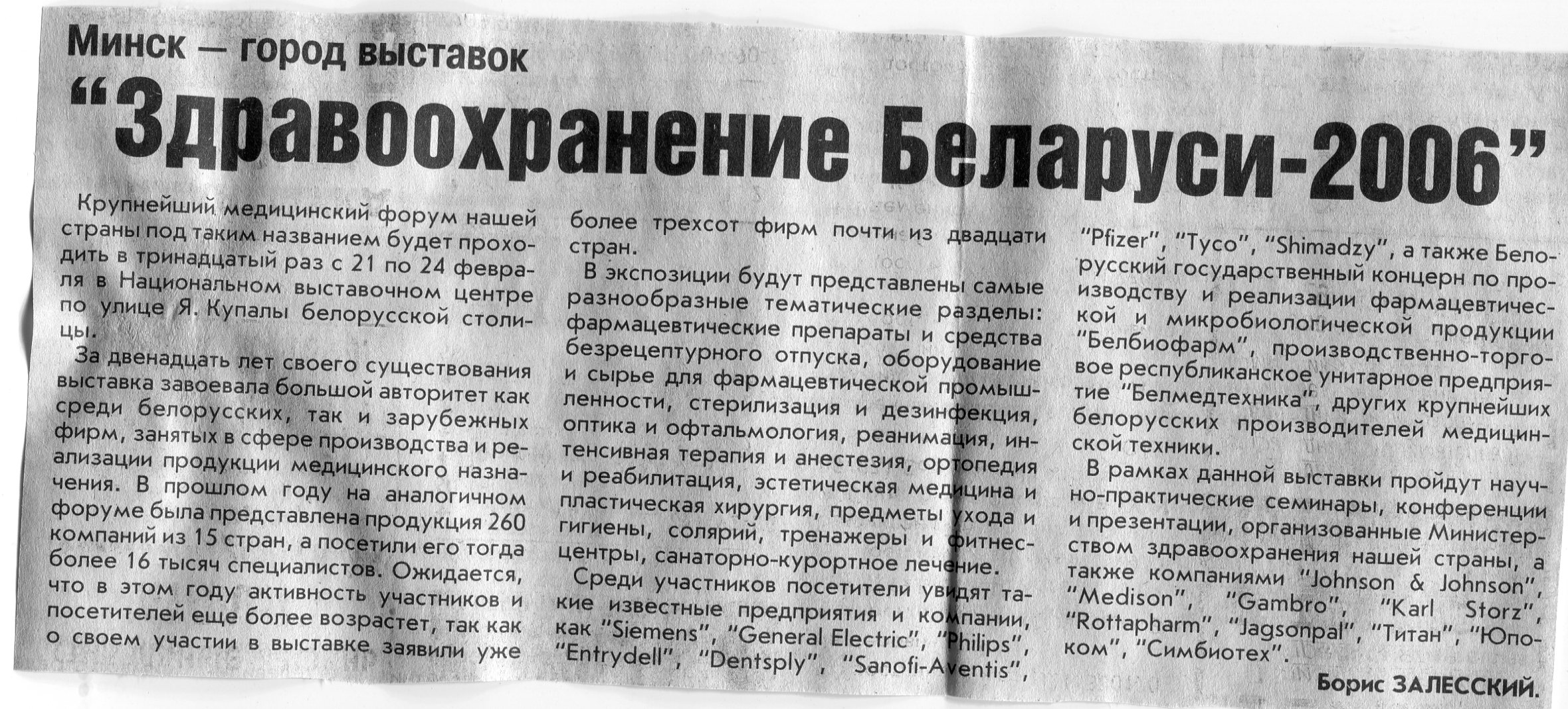 Залесский, Б. "Здравоохранение Беларуси-2006" / Б. Залесский // Вечерний Минск. – 2006. - 13 февр.