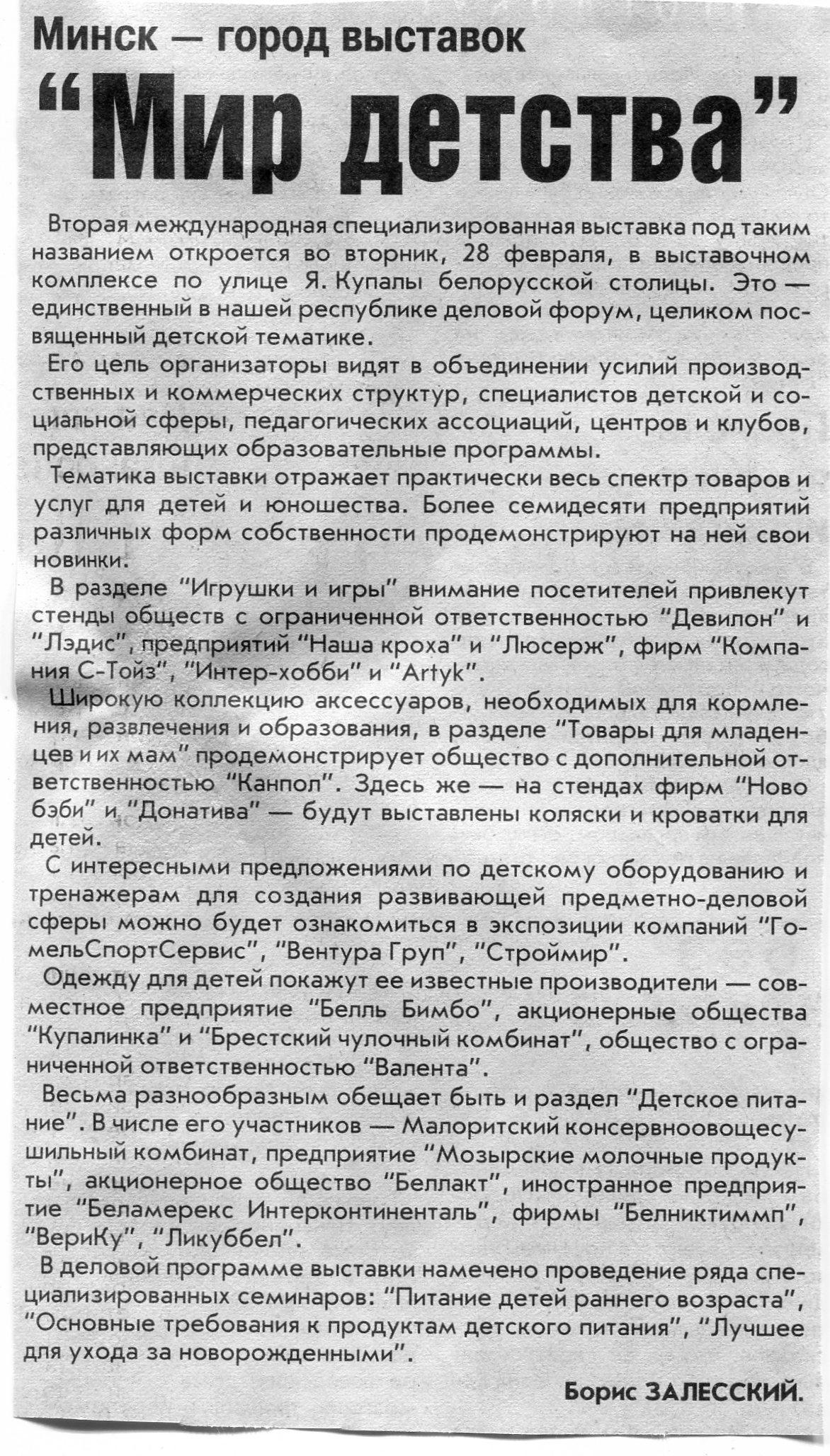 Залесский, Б. "Мир детства" / Б. Залесский // Вечерний Минск. – 2006. - 27 февр.