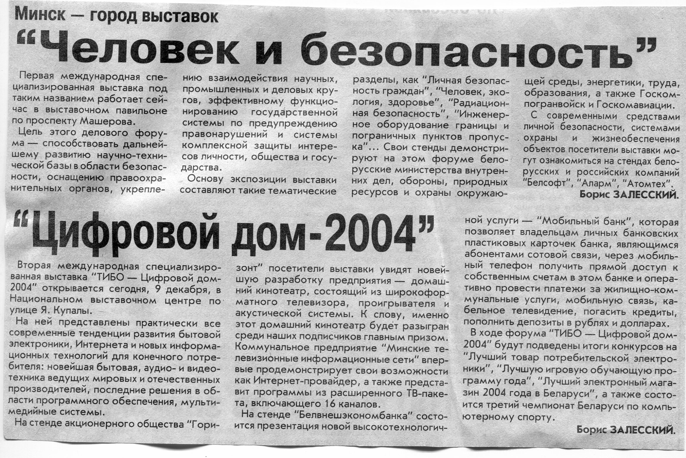 Залесский, Б. "Цифровой дом-2004" / Б. Залесский // Вечерний Минск. – 2004. - 9 дек.