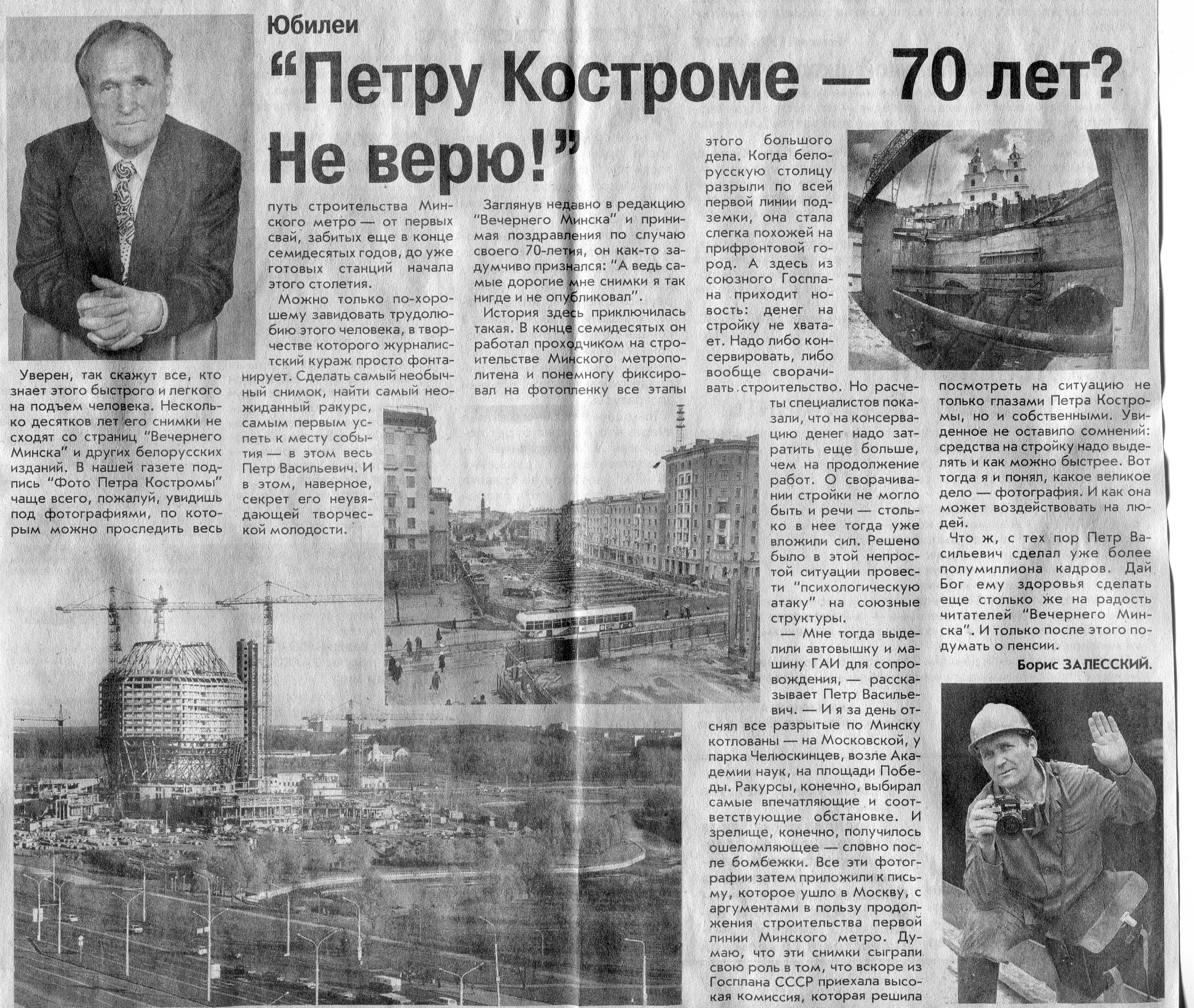 Залесский, Б. "Петру Костроме - 70 лет? Не верю!" / Б. Залесский // Вечерний Минск. – 2004. - 12 нояб.
