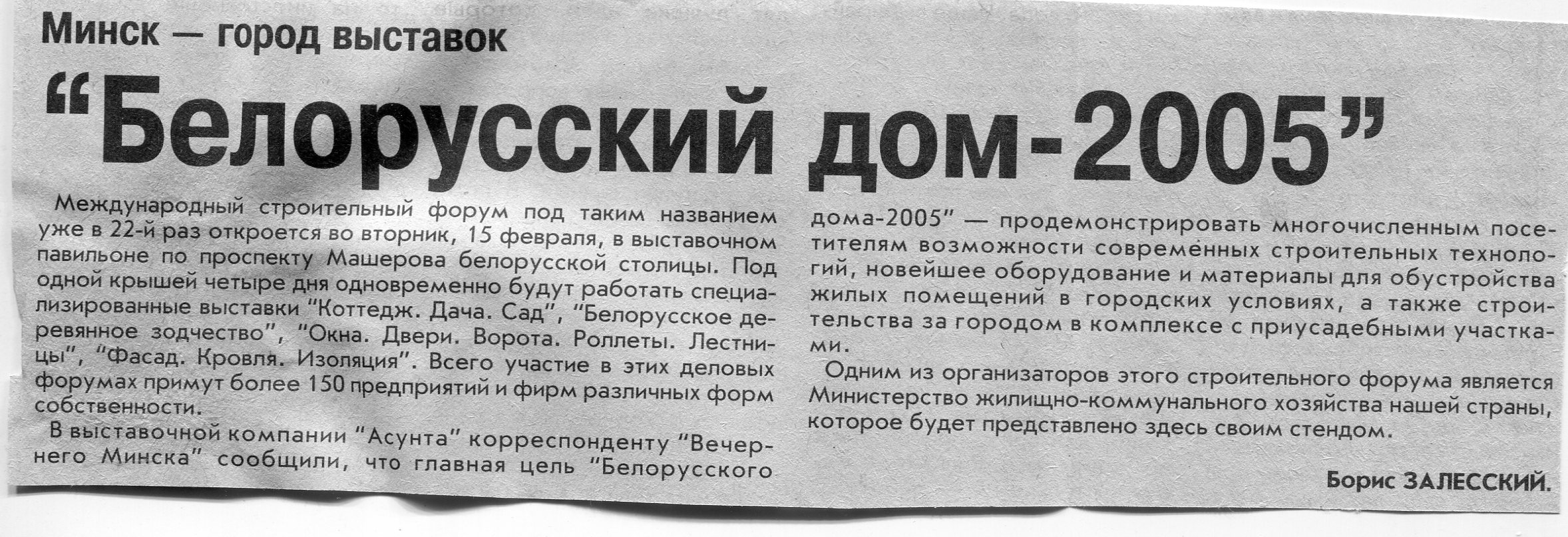 Залесский, Б. "Белорусский дом-2005" / Б. Залесский // Вечерний Минск. – 2005. - 14 февр.