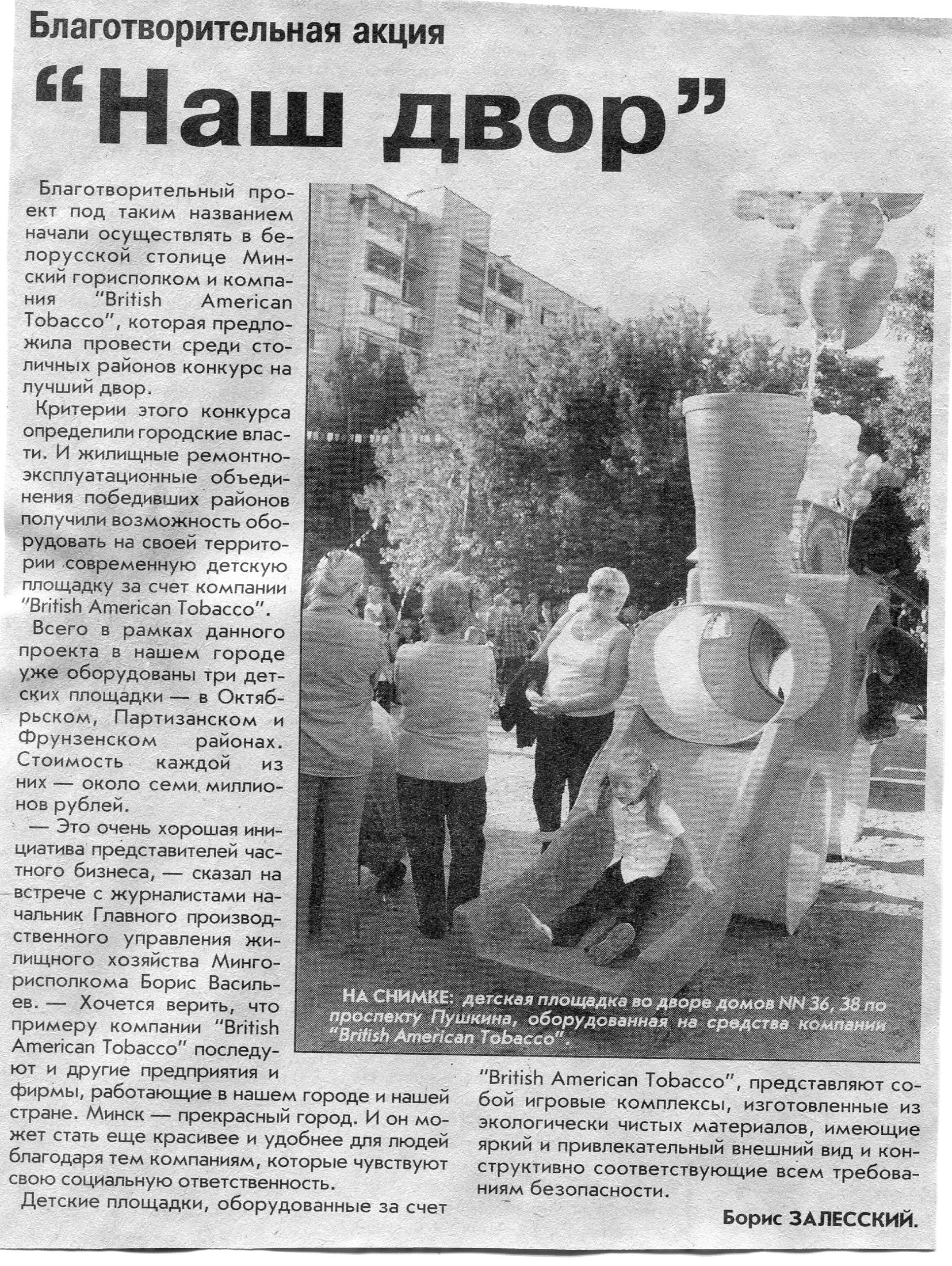 Залесский, Б. "Наш двор" / Б. Залесский // Вечерний Минск. – 2004. - 1 сент.