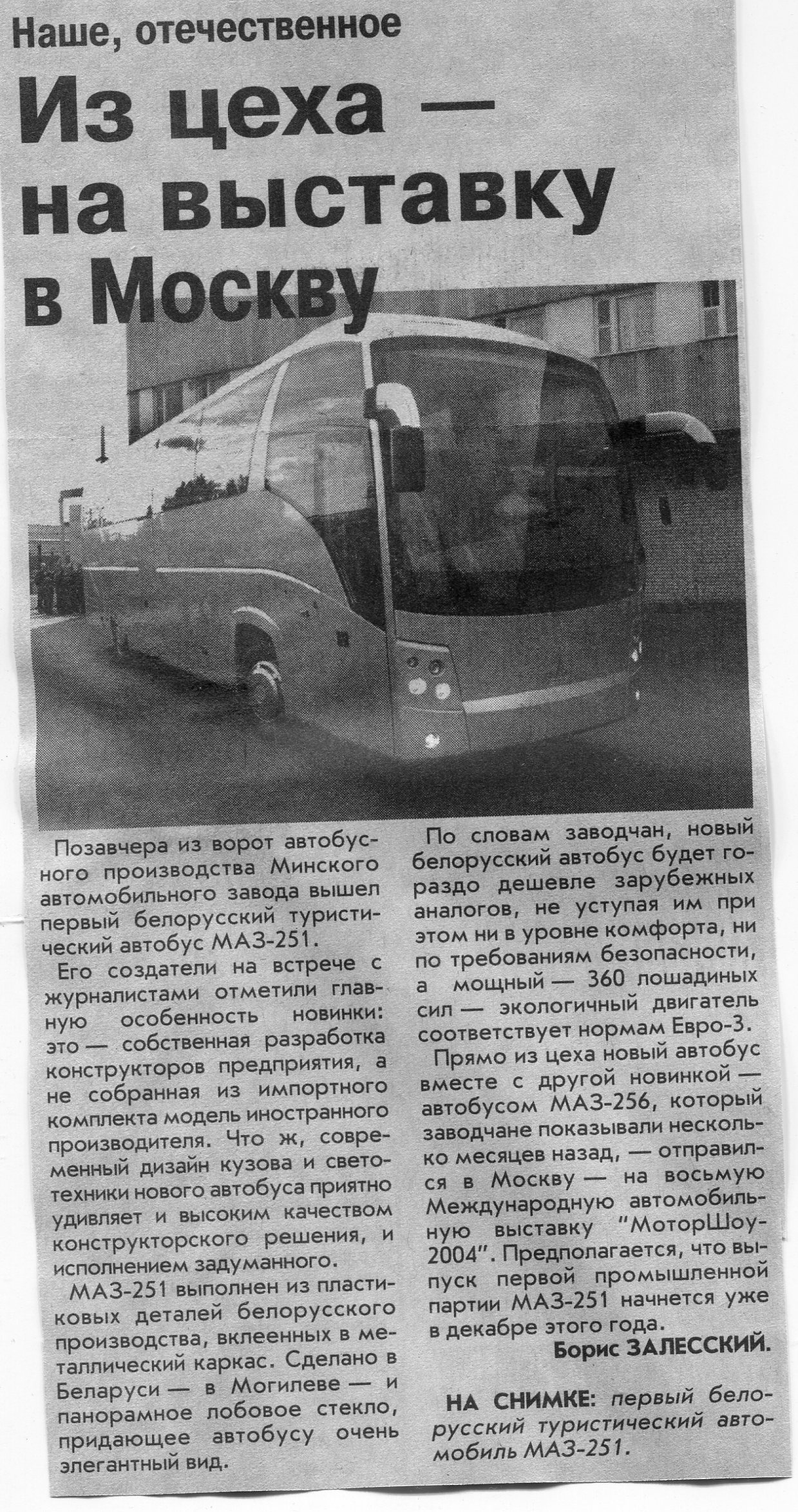 Залесский, Б. Из цеха - на выставку в Москву / Б. Залесский // Вечерний Минск. – 2004. - 25 авг.