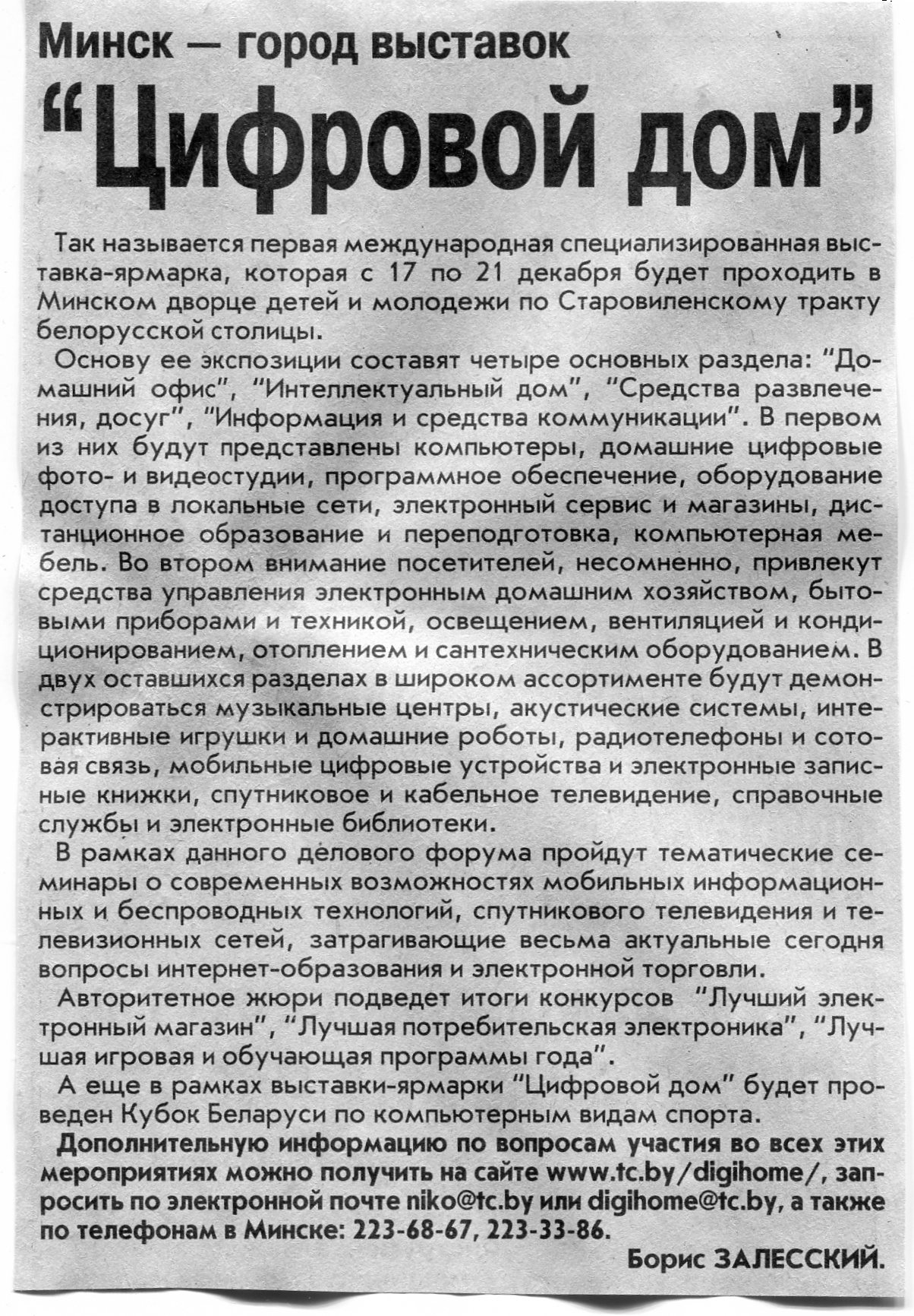 Залесский, Б. "Цифровой дом" / Б. Залесский // Вечерний Минск. – 2003. – 26 нояб.