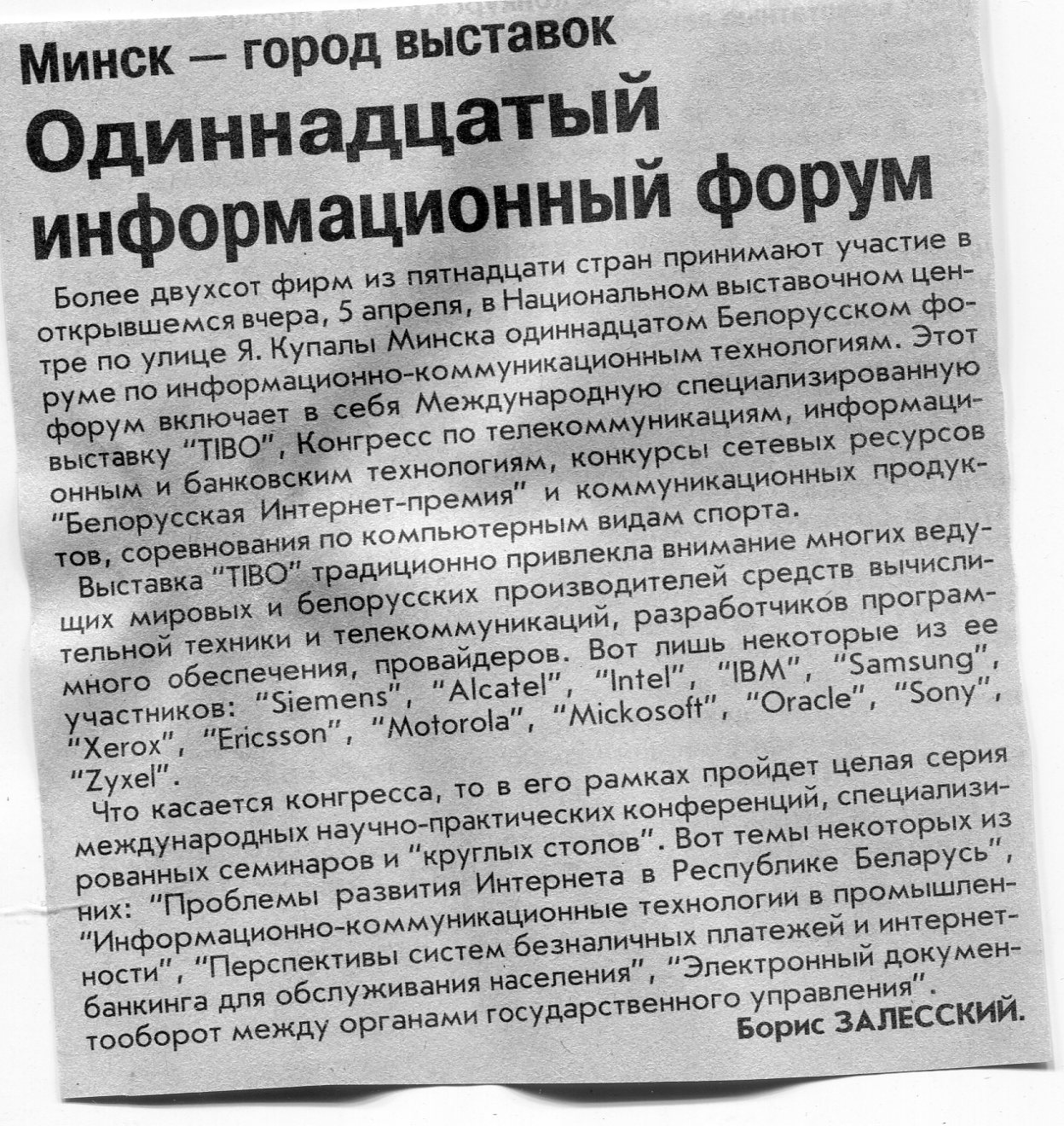 Залесский, Б. Одиннадцатый информационный форум / Б. Залесский // Вечерний Минск. – 2004. – 6 апр.