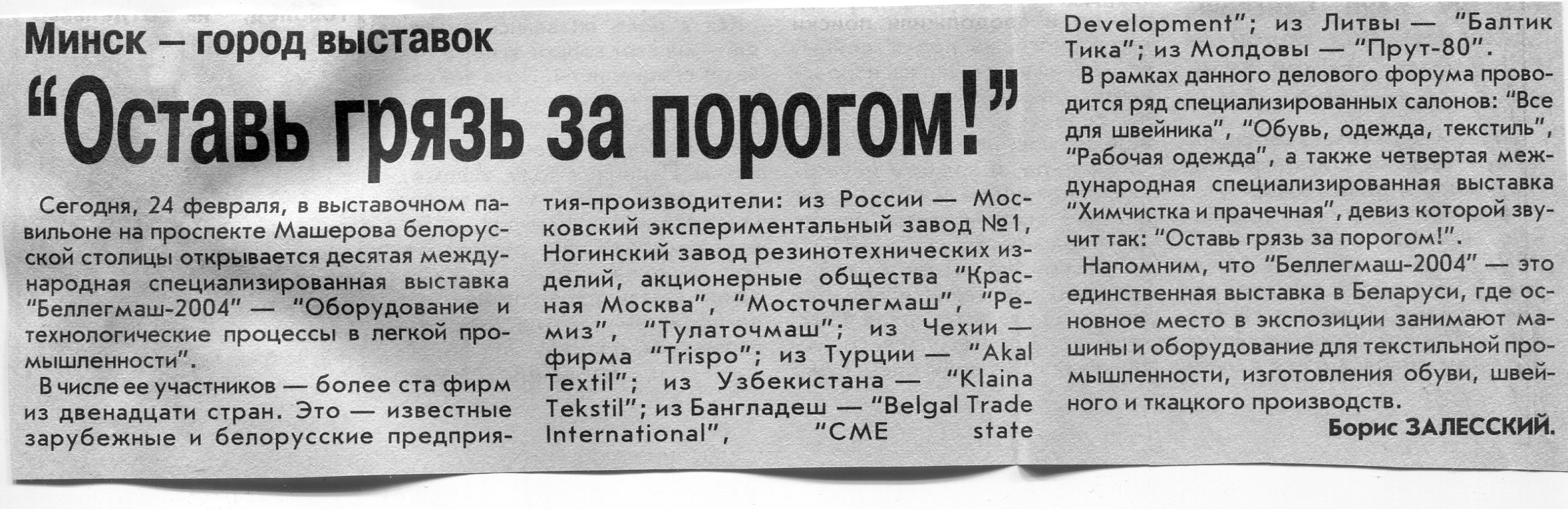 Залесский, Б. "Оставь грязь за порогом!" / Б. Залесский // Вечерний Минск. – 2004. – 24 февр.