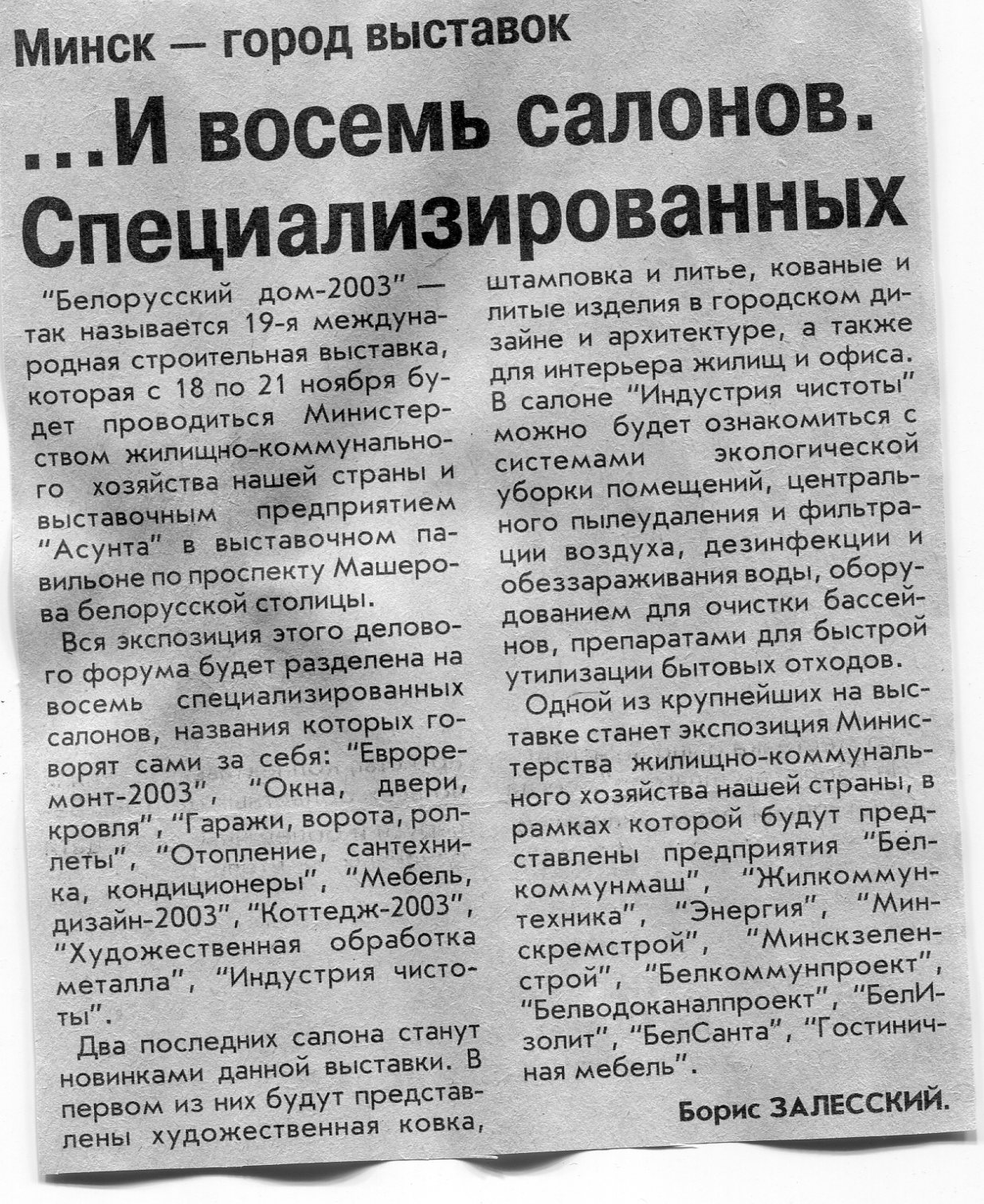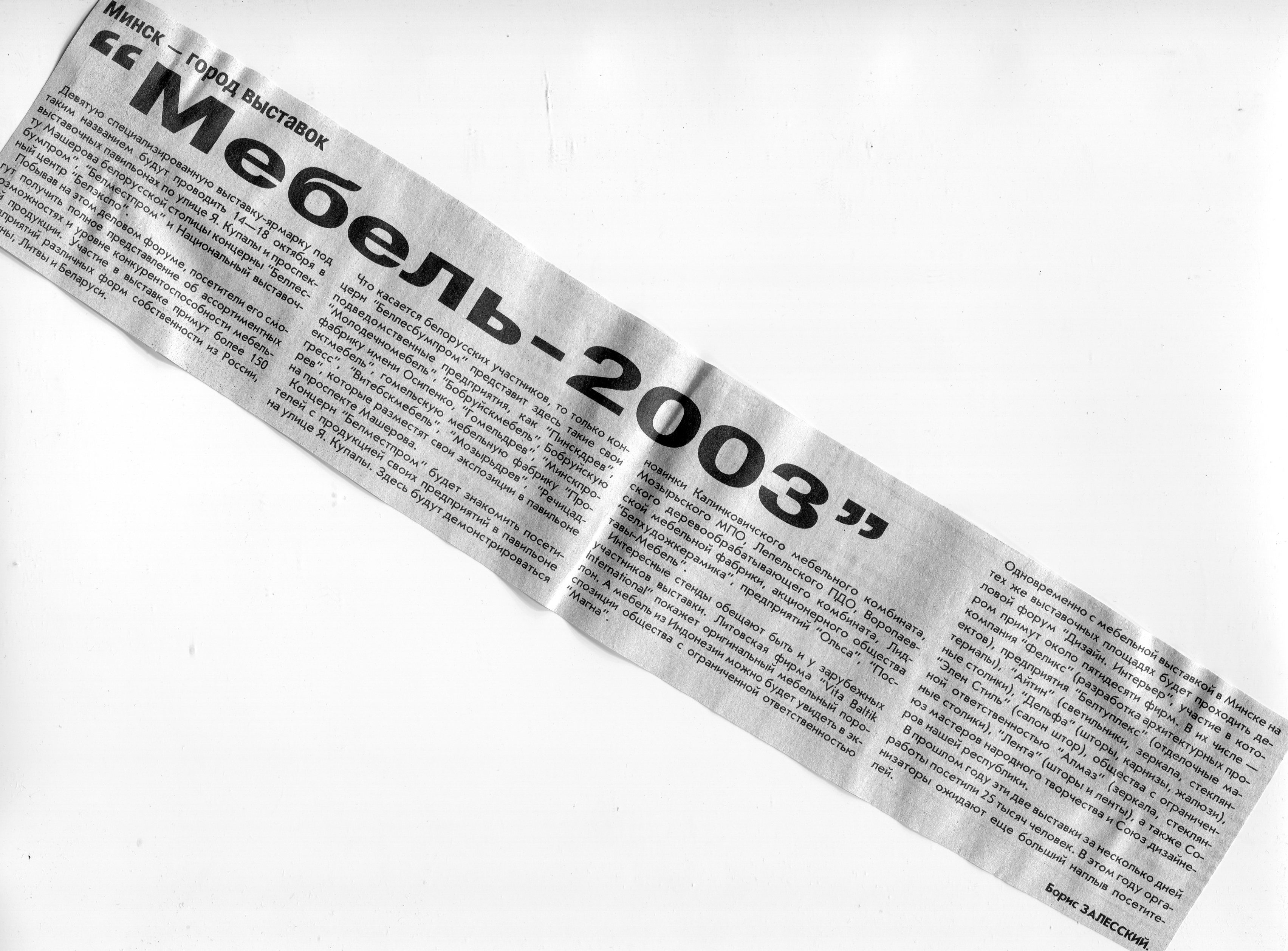 Залесский, Б. "Мебель-2003" / Б. Залесский // Вечерний Минск. – 2003. – 22 авг.