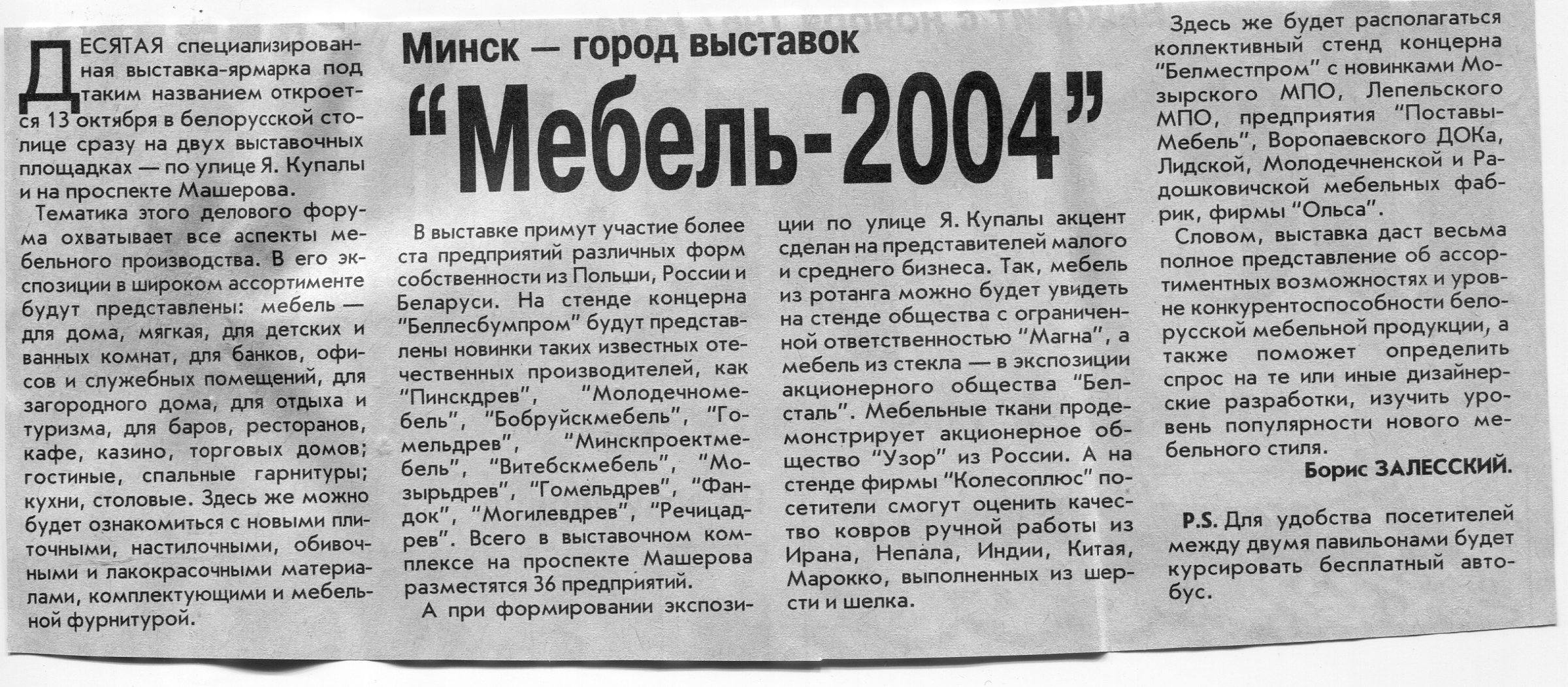 Залесский, Б. "Мебель-2004" / Б. Залесский // Вечерний Минск. – 2003. – 7 окт.