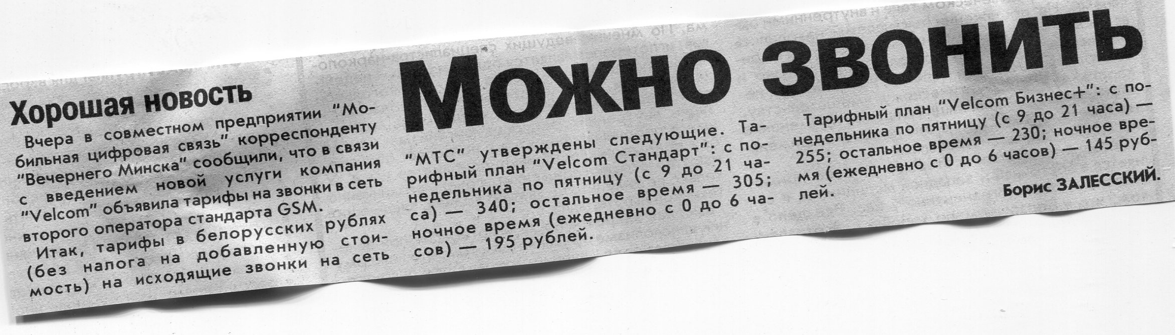 Залесский, Б. "Velcom": хорошие новости / Б. Залесский // Вечерний Минск. - 2002. - 23 мая.