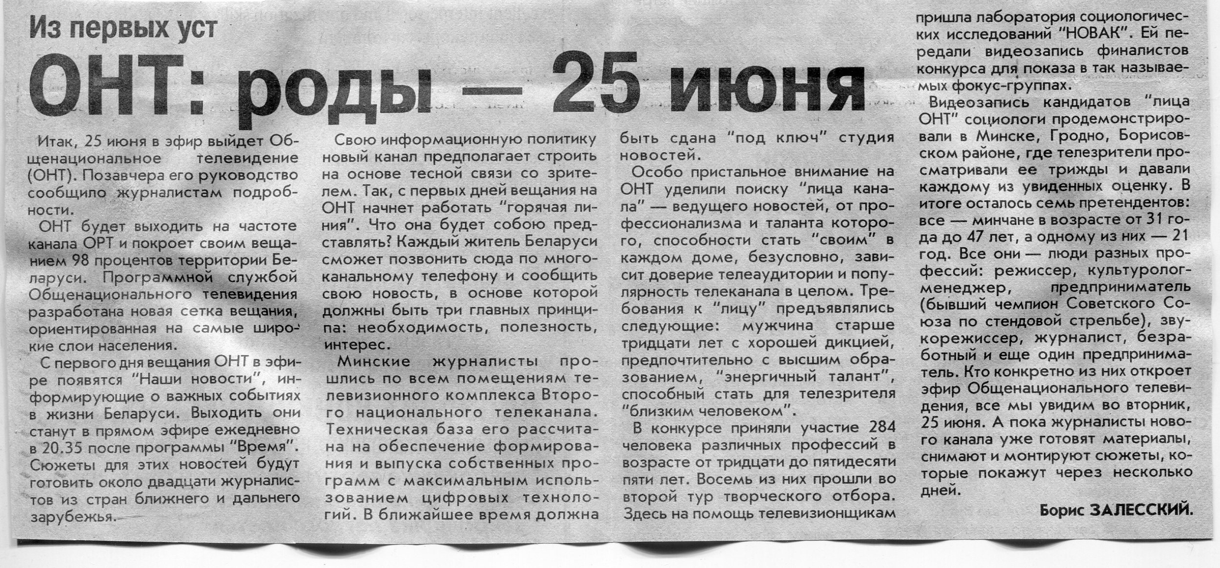Залесский, Б. ОНТ: роды - 25 июня / Б. Залесский // Вечерний Минск. - 2002. - 21 июн.