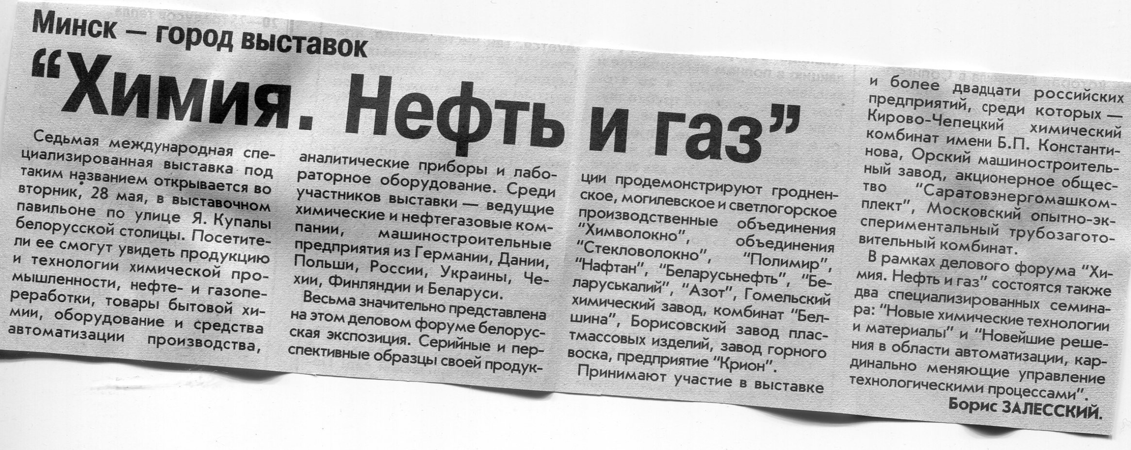 Залесский, Б. "Химия. Нефть и газ" / Б. Залесский // Вечерний Минск. - 2002. - 28 мая.