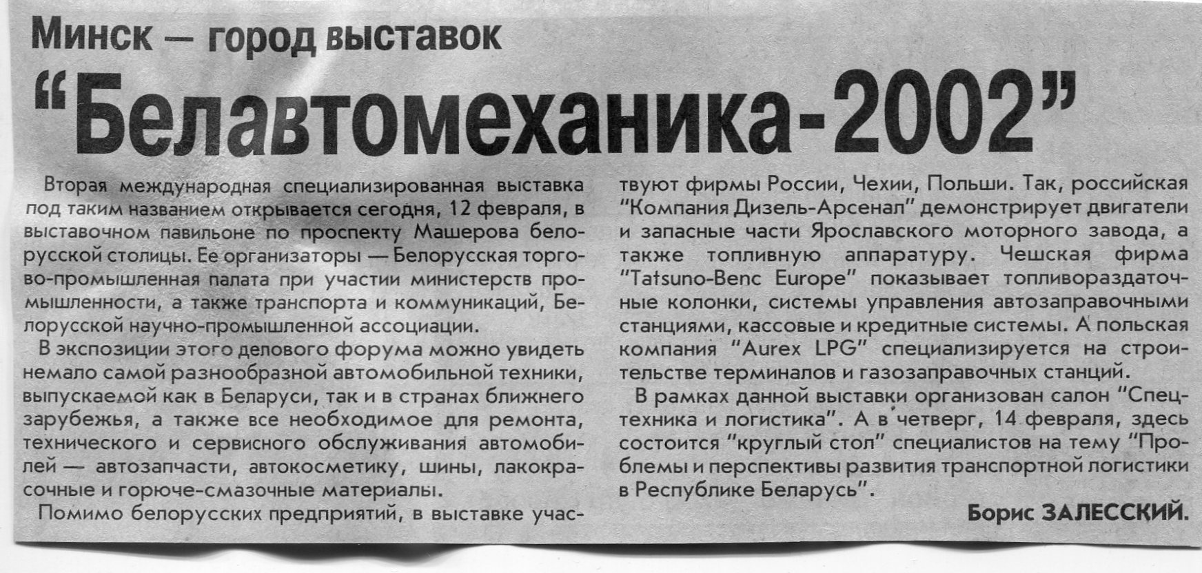 Залесский, Б. "Белавтомеханика-2002" / Б. Залесский // Вечерний Минск. - 2002. - 12 февр.