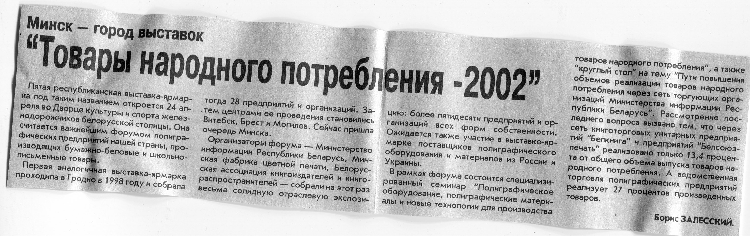 Залесский, Б. "Товары народного потребления-2002" / Б. Залесский // Вечерний Минск. - 2002. - 24 апр.
