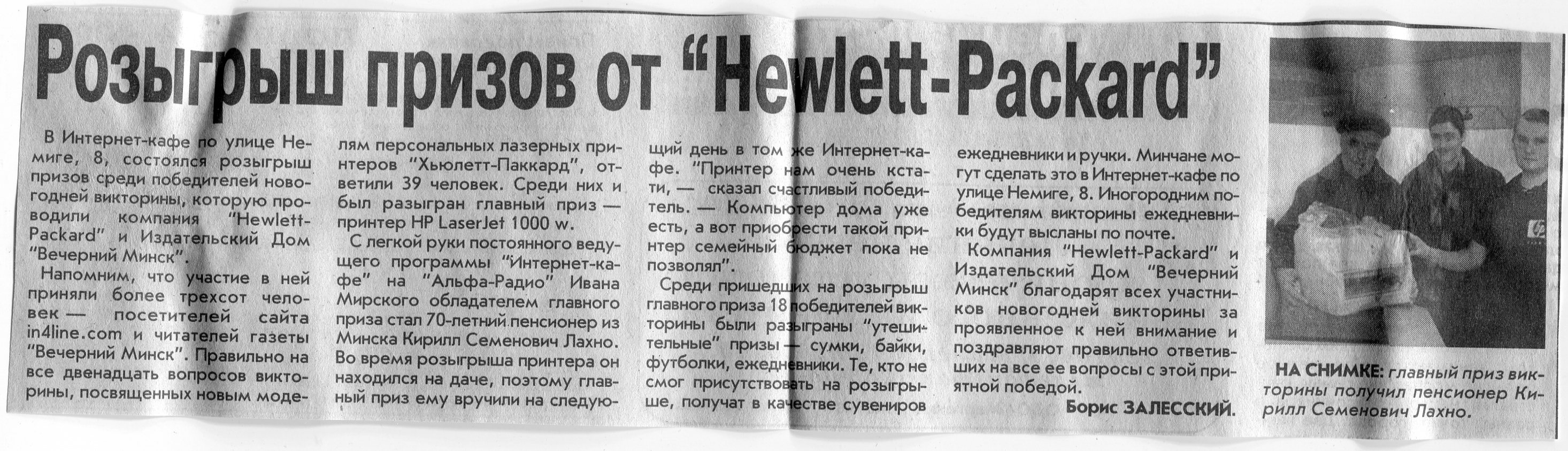 Залесский, Б. Розыгрыш призов от "Hewlett-Packard" / Б. Залесский // Вечерний Минск. - 2002. - 21 февр.