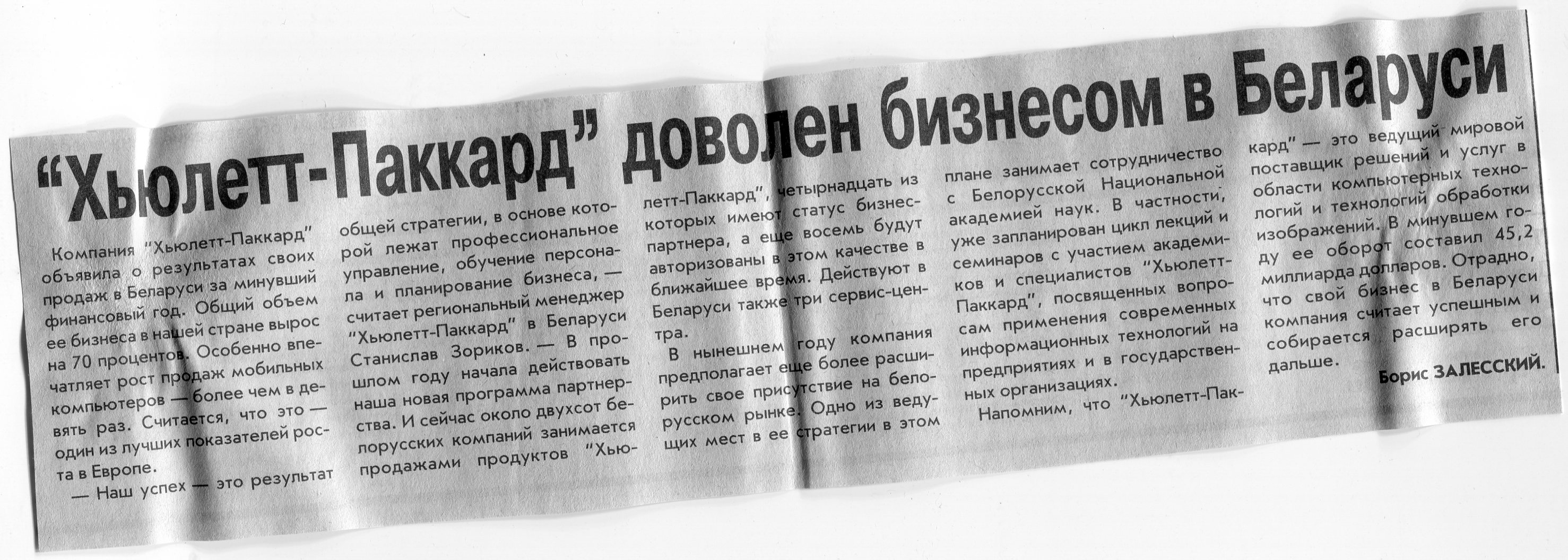 Залесский, Б. "Хьюлетт-Паккард" доволен бизнесом в Беларуси / Б. Залесский // Вечерний Минск. - 2002. - 6 февр.