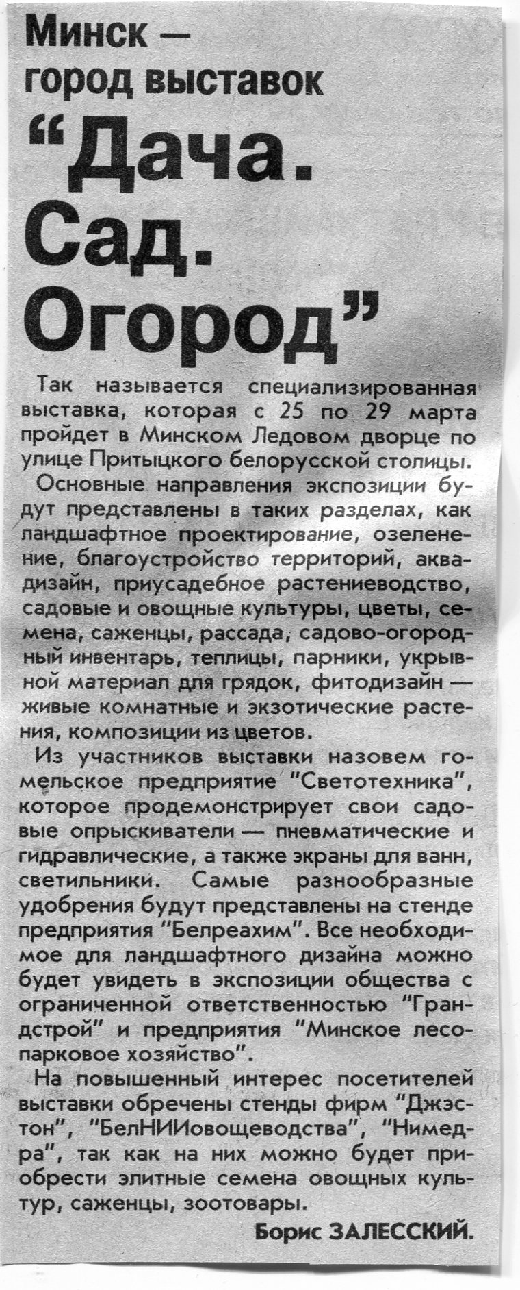 Залесский, Б. "Дом. Сад. Огород" / Б. Залесский // Вечерний Минск. - 2002. - 22 мар.