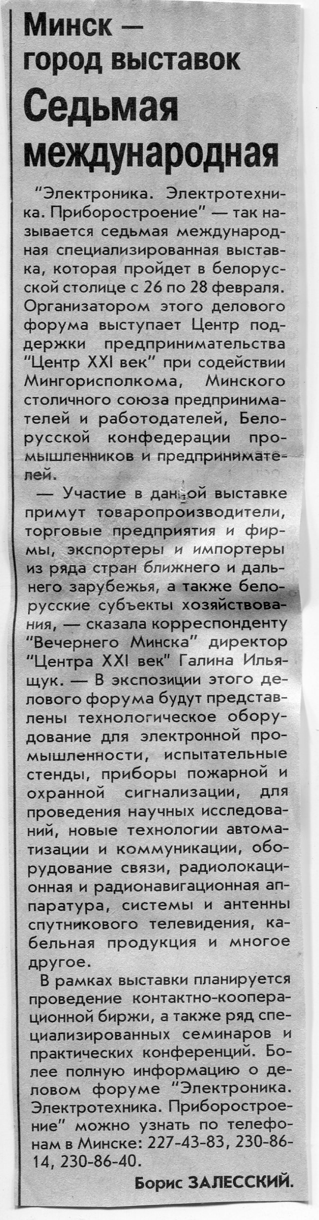 Залесский, Б. Приглашает "Белорусский дом-2001" / Б. Залесский // Вечерний Минск. - 2001. - 19 нояб.