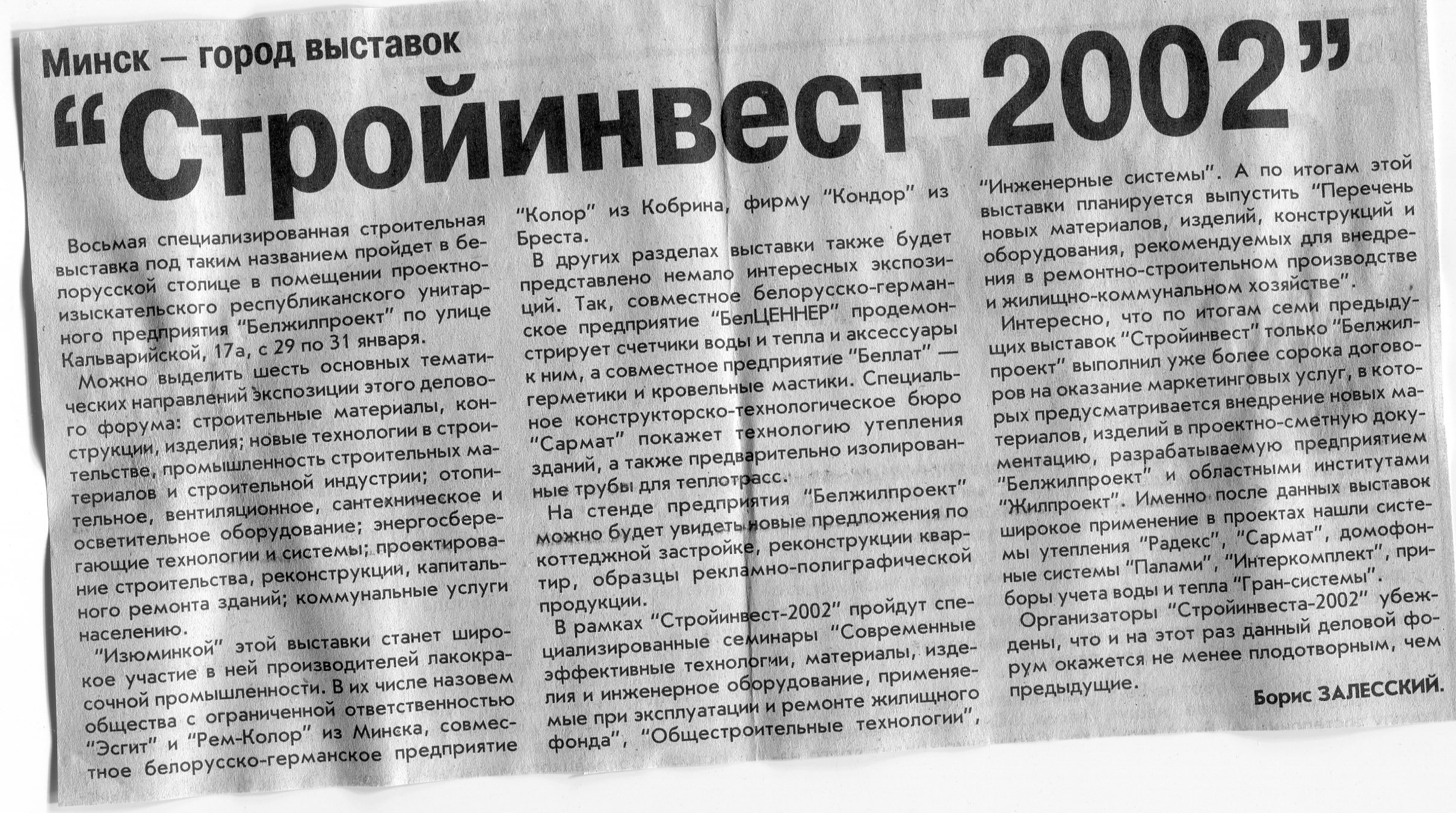 Залесский, Б. "Стройинвест-2002" / Б. Залесский // Вечерний Минск. - 2002. - 24 янв.