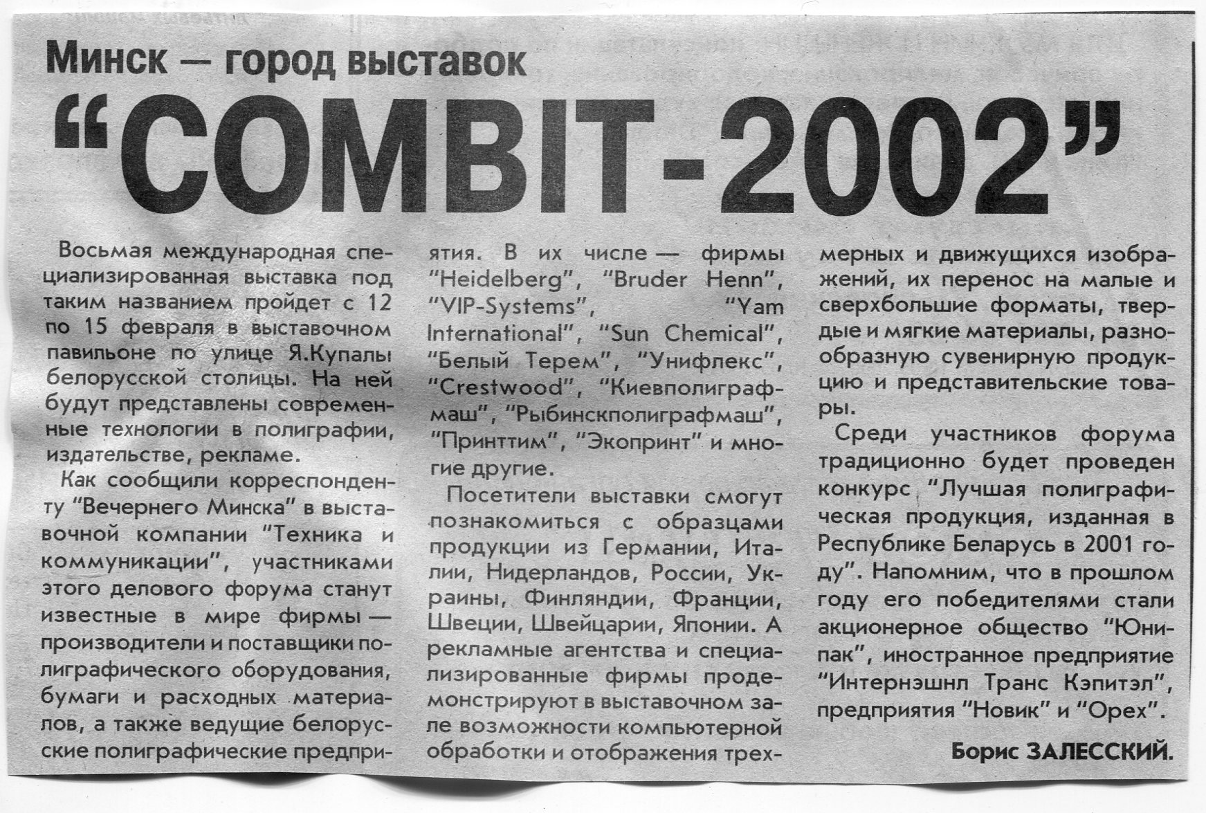 Залесский, Б. "Combit-2002" / Б. Залесский // Вечерний Минск. - 2002. - 16 янв.