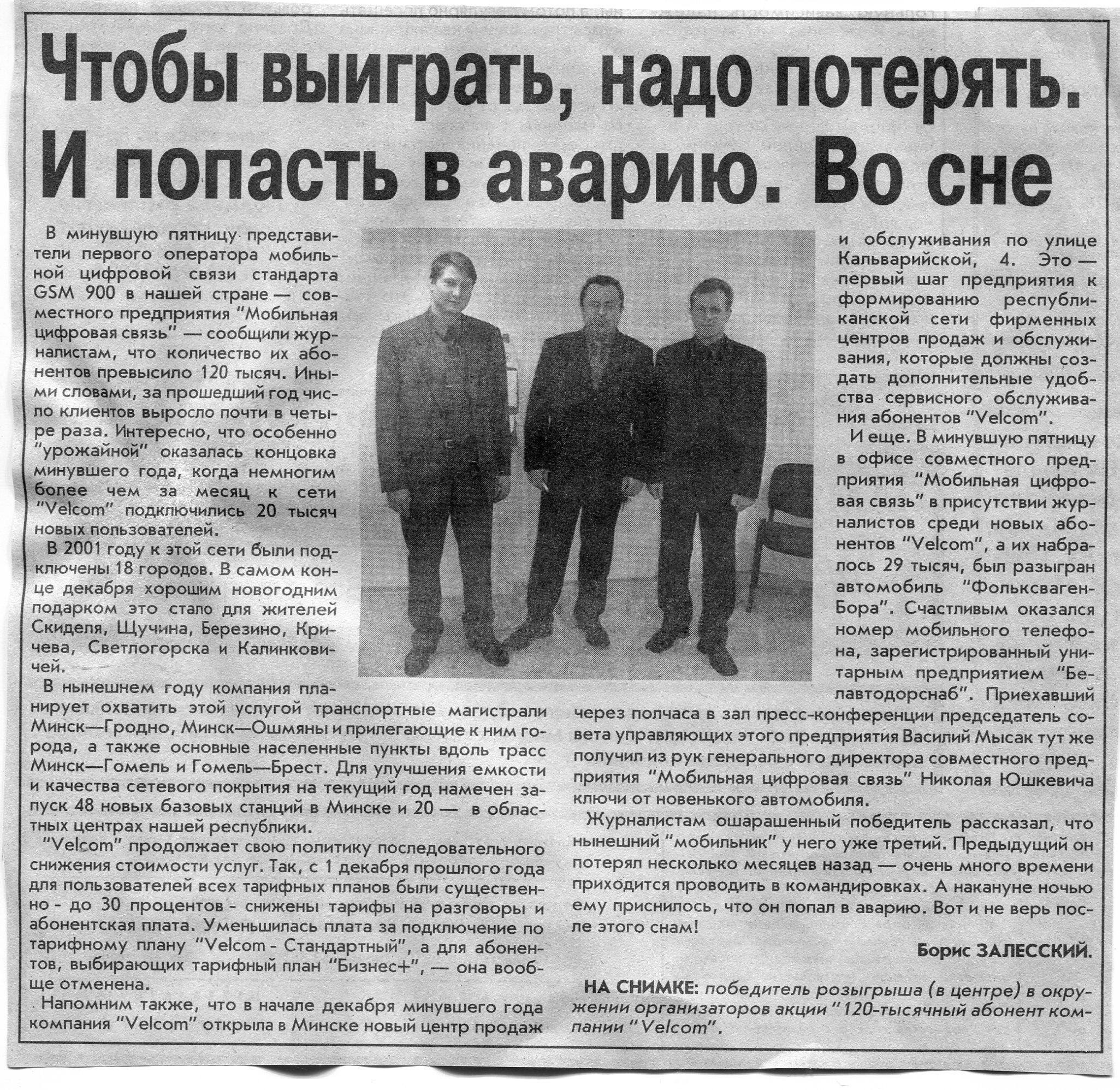 Залесский, Б. Чтобы выиграть, надо потерять. И попасть в аварию. Во сне / Б. Залесский // Вечерний Минск. - 2002. - 16 янв.