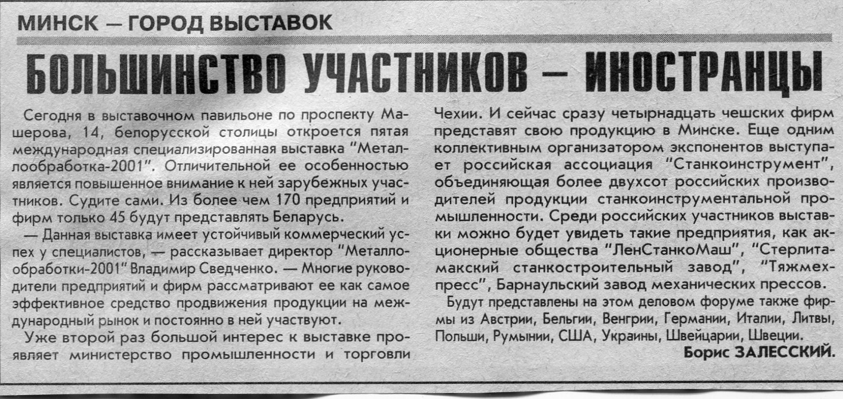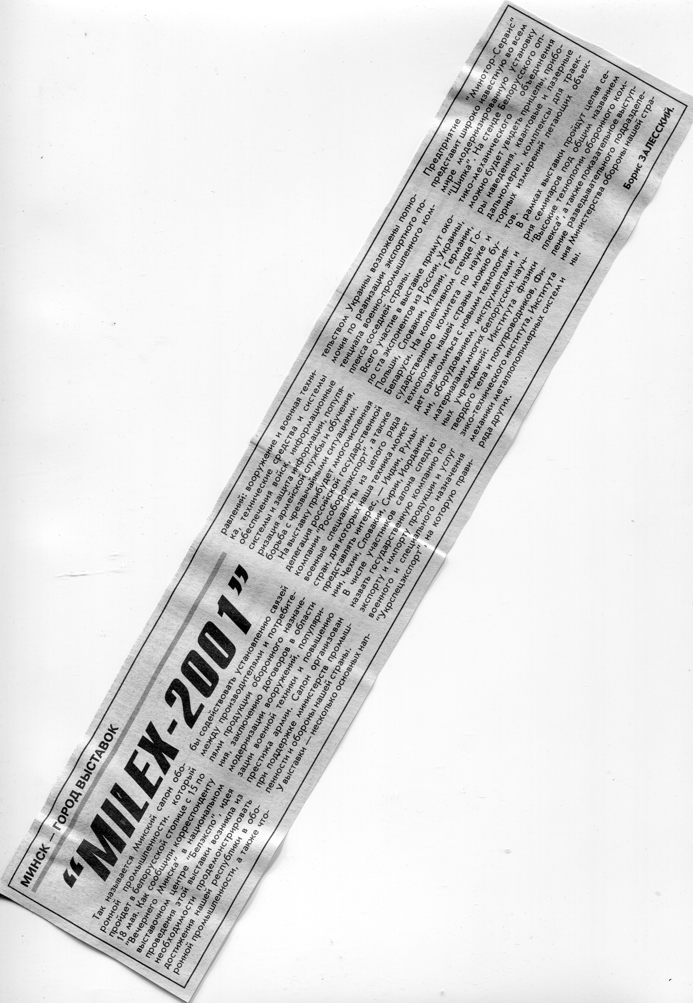 Залесский, Б. "Milex-2001" / Б. Залесский // Вечерний Минск. - 2001. - 14 мая.