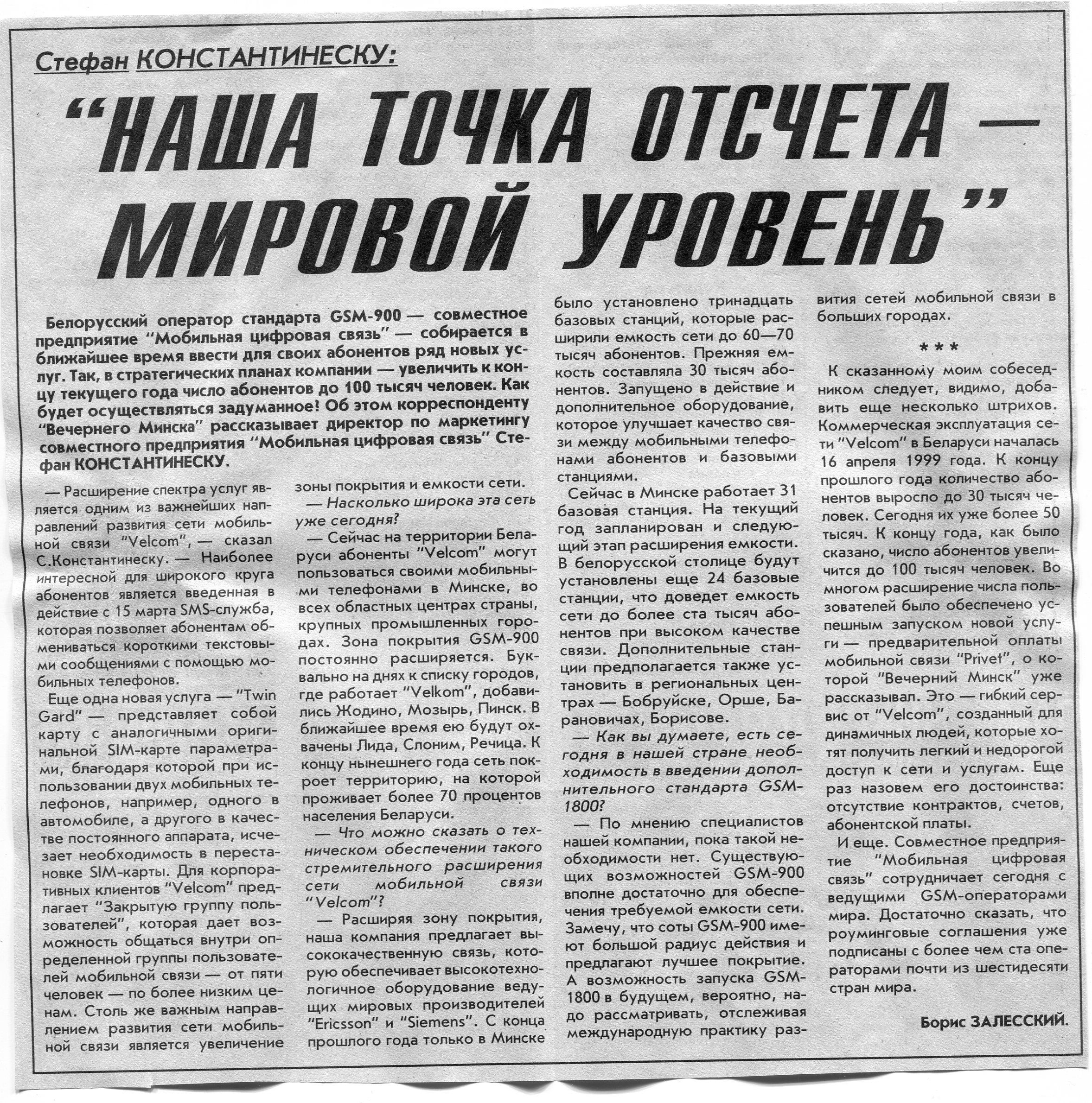 Залесский, Б. Стефан Константинеску: "Наша точка отсчета - мировой уровень" / Б. Залесский // Вечерний Минск. - 2001. - 13 апр.
