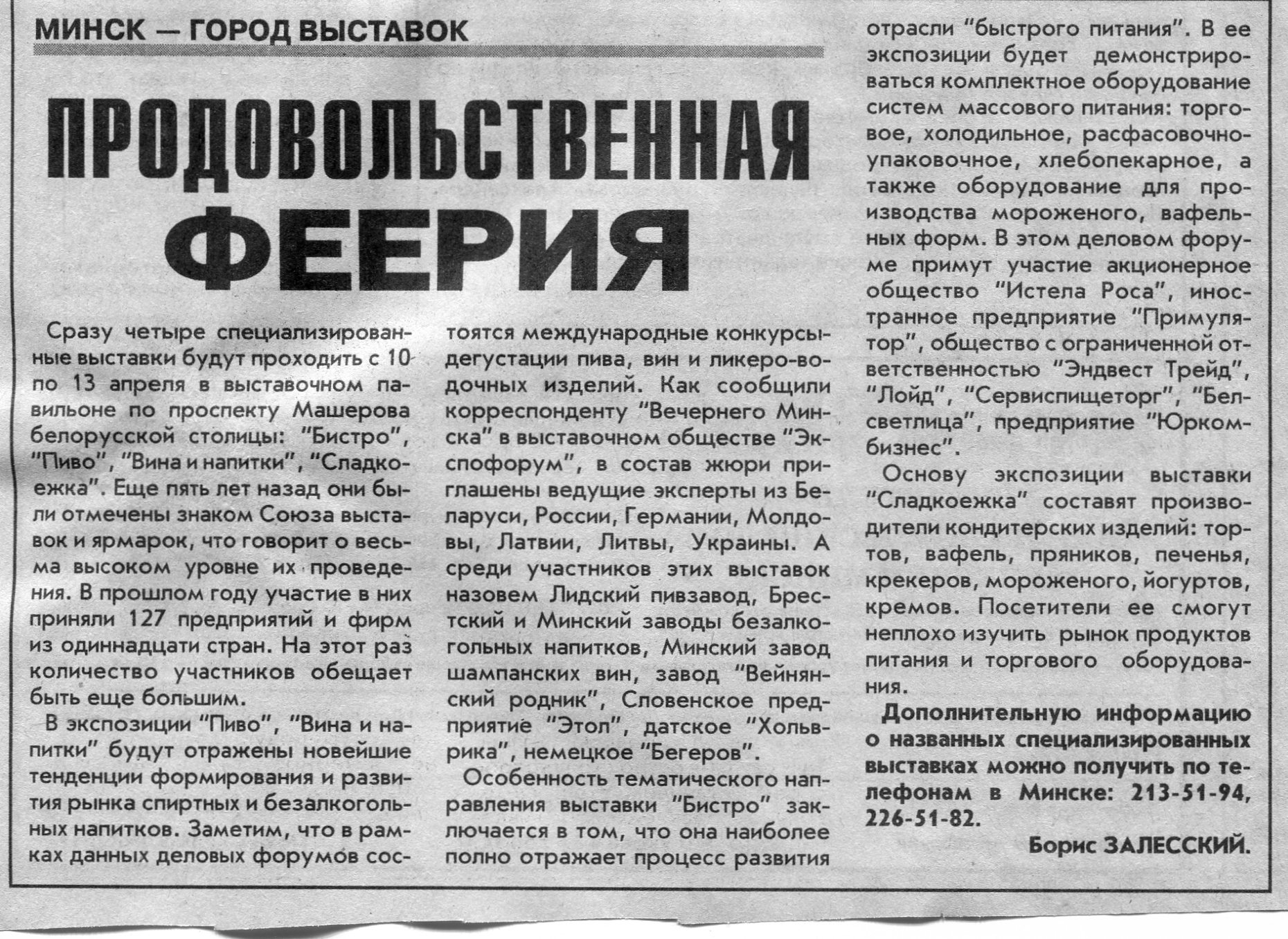 Залесский, Б. Продовольственная феерия / Б. Залесский // Вечерний Минск. - 2001. - 6 апр.