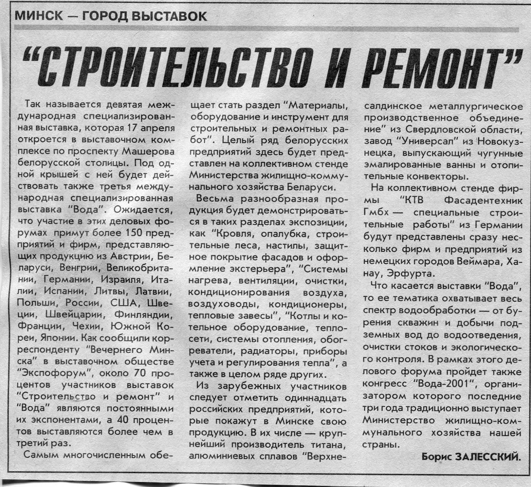 Залесский, Б. "Стройэкспо-2001" / Б. Залесский // Вечерний Минск. - 2001. - 5 мар.