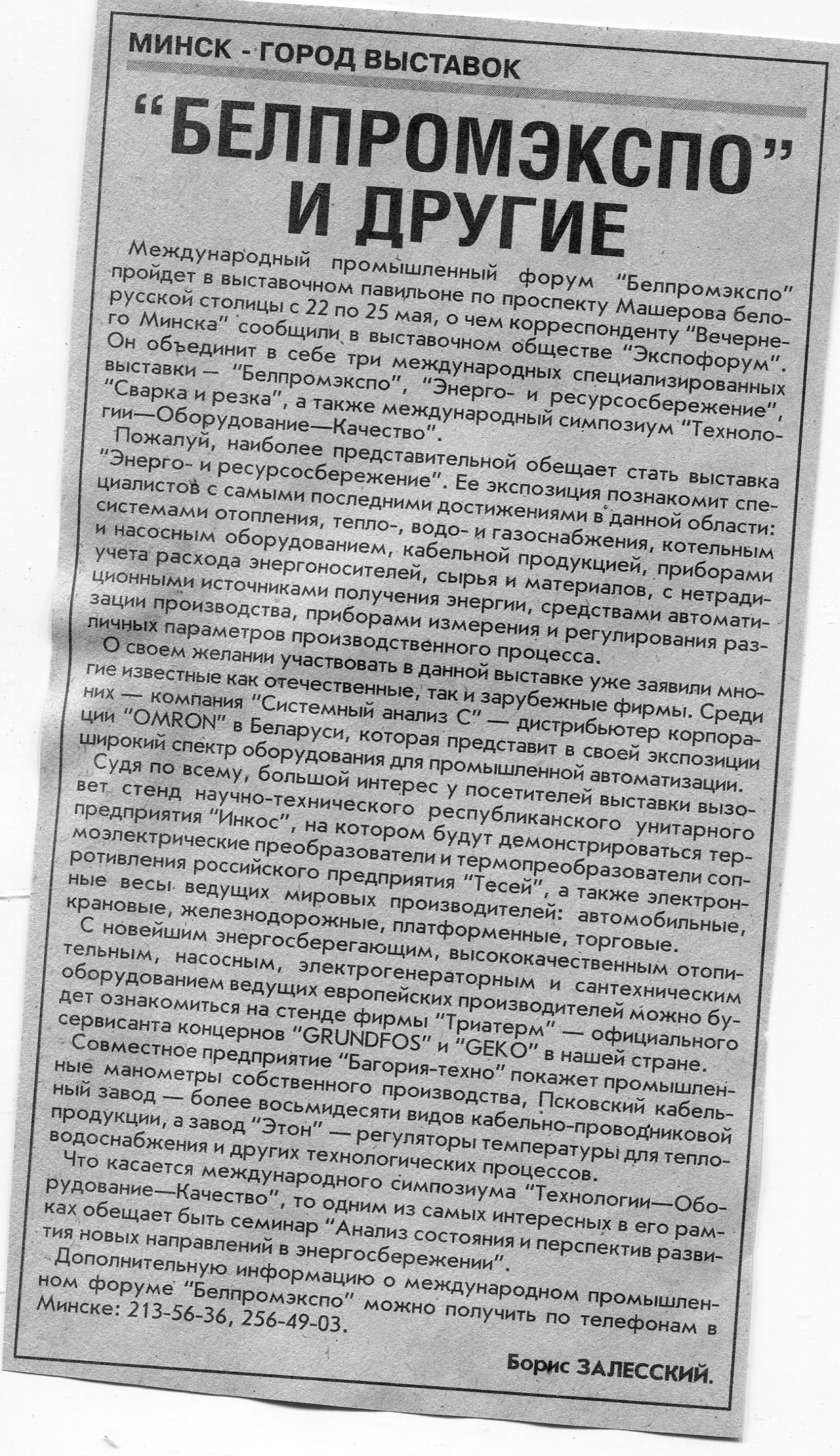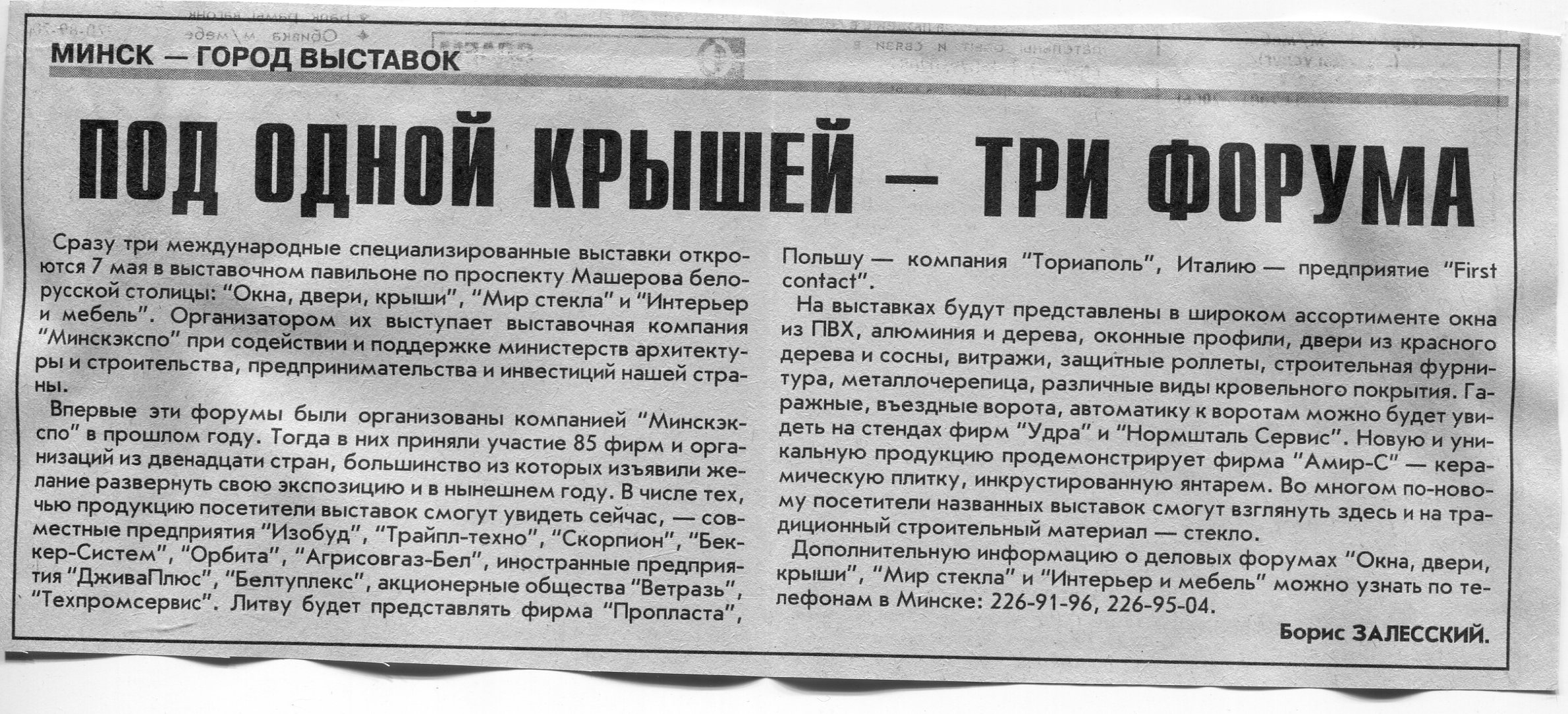Залесский, Б. "Белпромэкспо" и другие / Б. Залесский // Вечерний Минск. - 2001. - 3 мая.