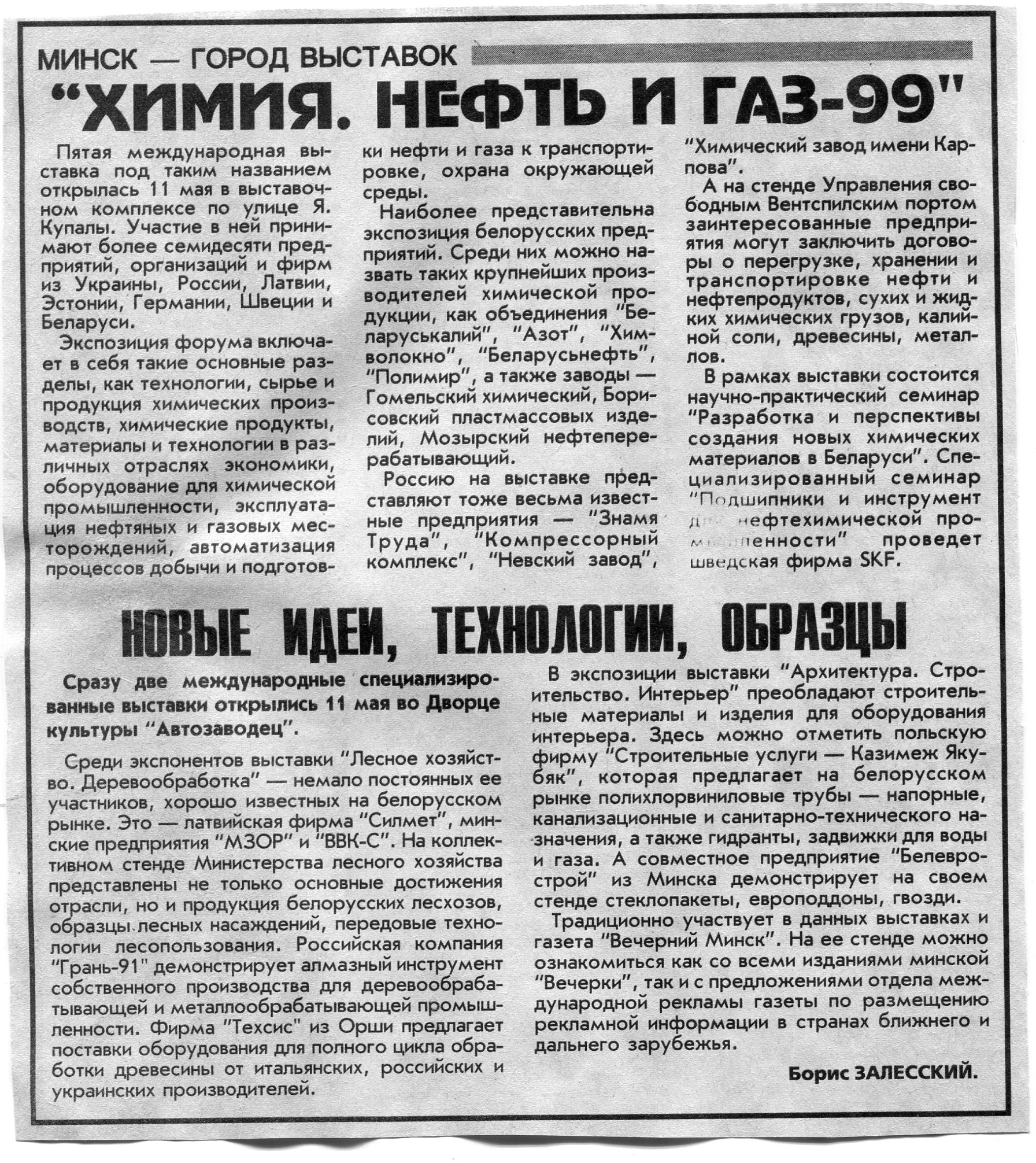 Залесский, Б. "Химия. Нефть и газ-99" / Б. Залесский // Вечерний Минск. - 1999. - 12 мая.