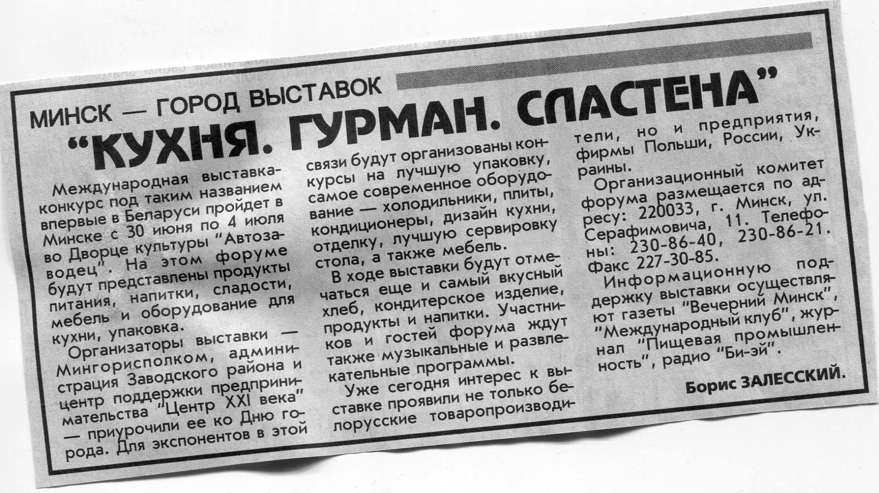 Залесский, Б. "Кухня. Гурман. Сластена" / Б. Залесский // Вечерний Минск. - 1999. - 8 июн.