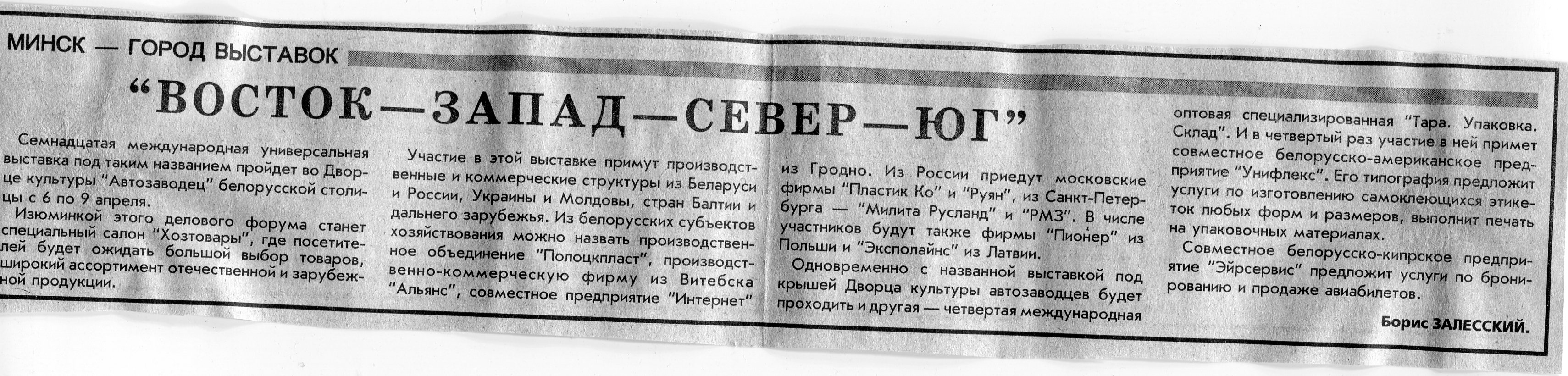 Залесский, Б. "Восток - Запад - Север - Юг" / Б. Залесский // Вечерний Минск. - 1999. - 19 мар.