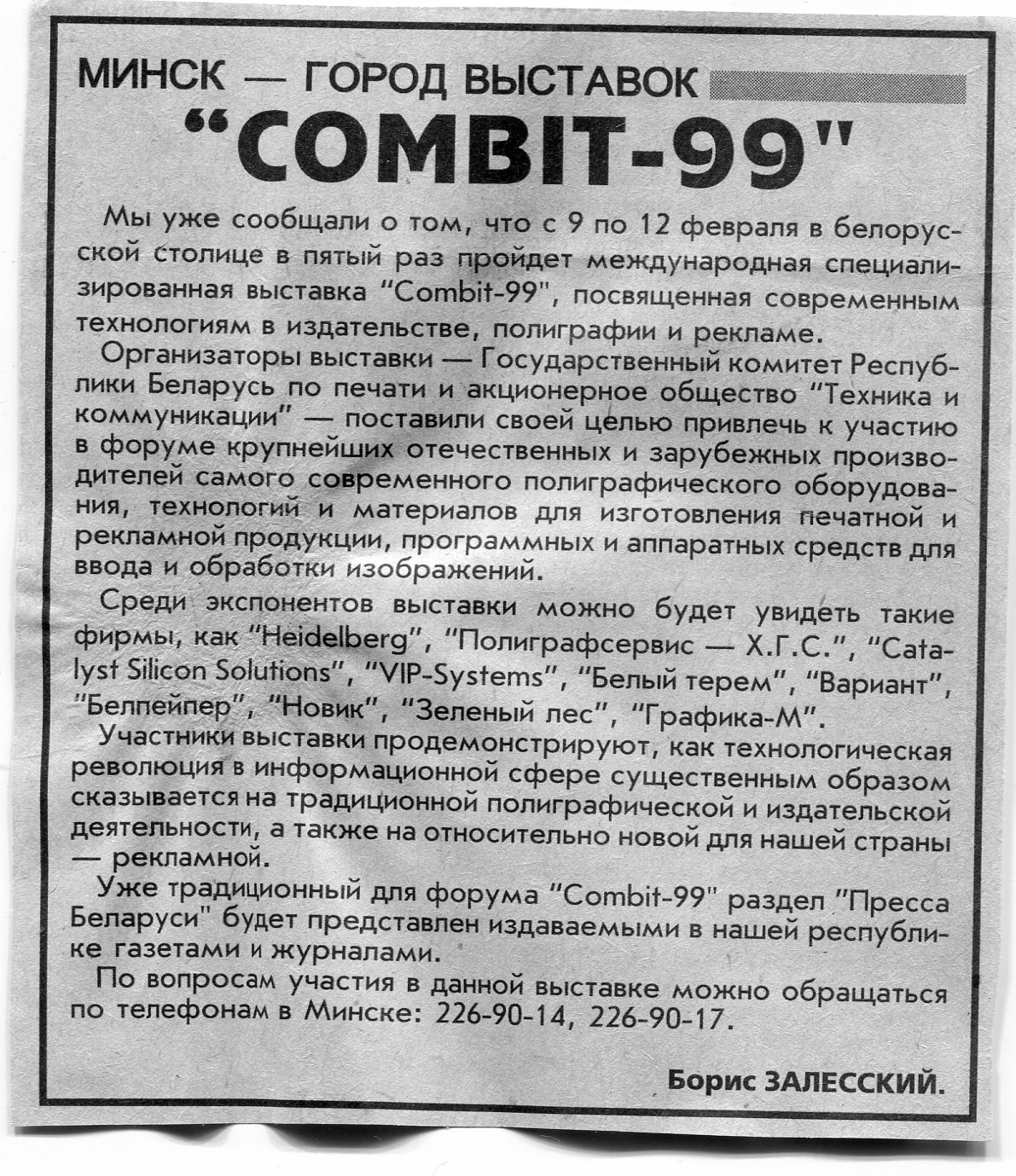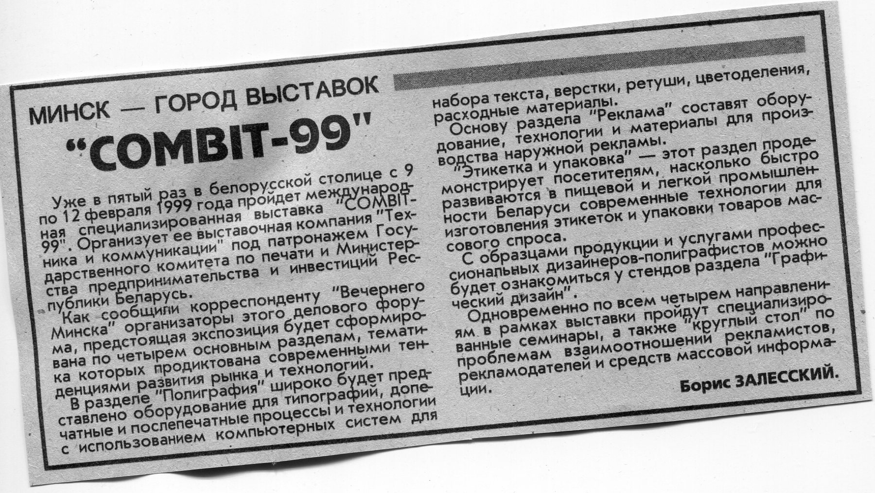 Залесский, Б. "Combit-99" / Б. Залесский // Вечерний Минск. - 1998. - 30 дек.